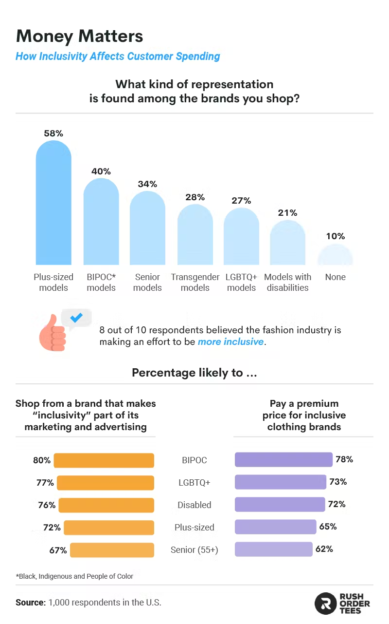- 80% of respondents felt the fashion industry is making an effort to be more inclusive.
