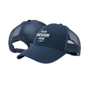 Another no-minimum option, this trucker hat from Port Authority is both comfortable and classic. Its mid-profile design and 5-panel construction make it a great choice for those who want to show off their custom design with small quantity orders.