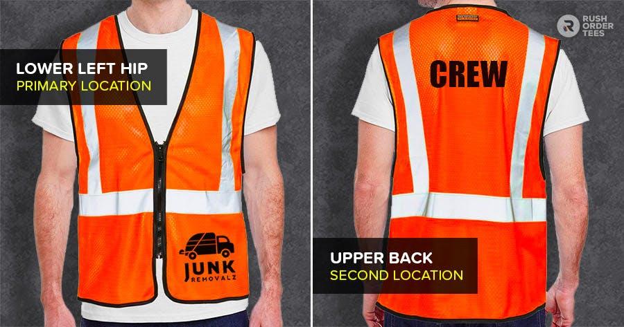 Safety is the most important factor in workwear, but there's also a great branding opportunity. Customizing safety vests can be more challenging than other types of apparel. This article covers six common logo placement options for various types of safety vests, along with design tips and examples.