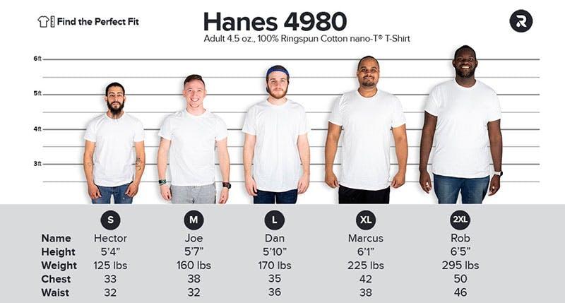 Let’s say they start their order with a standard 100% cotton long-sleeve: the Gildan® 240. Is this the right T-shirt? While a cotton is a good fabric option for its comfort and breathability, and Gildan is on the cheaper side, this item is 6 oz fabric weight (per square foot), which is on the heavier side. That means it can get hot. And with cotton being moisture-absorbing, it can get sweaty. The long sleeves don’t help either, as they trap heat and get in the way. Why would a plumber need sleeves? Big Jim’s crew members often find themselves elbow-deep in messy work. We’d recommend skipping the sleeves and heavy cotton. Instead, go with The Next Level N620. It’s a short-sleeved and lightweight (4.3 oz) cotton/poly blend, which dries faster than cotton. It’s pre-shrunk, has a tear-away tag, and comes in a variety of colors. More comfort, less sweat. For those more budget-conscious, the Hanes EcoSmart 5170 provides similar features at a lower price point.