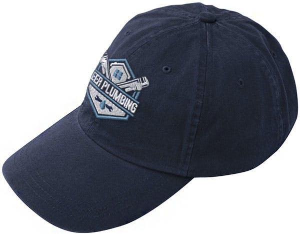 With our example order, the staff of Leer Plumbing would look great with a matching navy baseball cap. And for customizing a cap, nothing is better than embroidery.