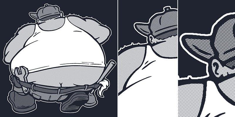 Halftones are everywhere if you look close enough. You know what I’m talking about if you’ve ever peered at a comic book through a magnifying glass. The other nice thing is that they will take on a lighter shade of the shirt color they are printed on.