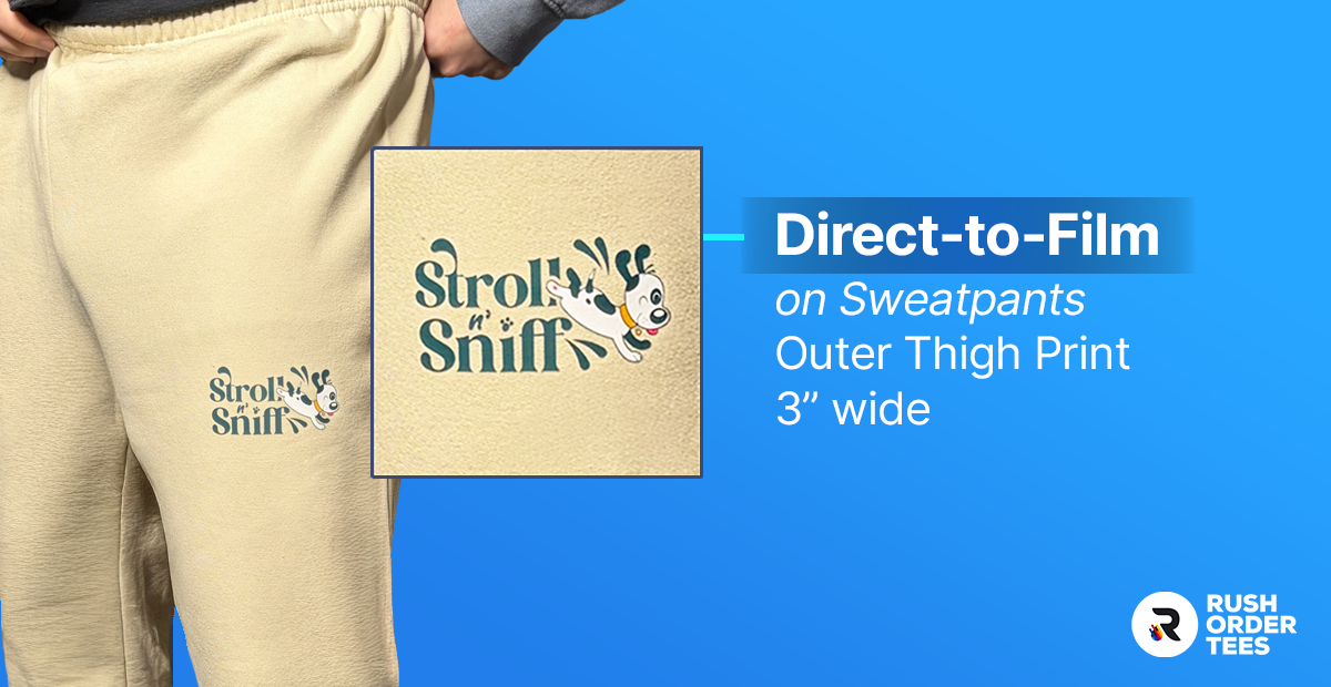 - Placement Ideas: Best for front or back panels on casual joggers, lounge pants, or pajama bottoms where comfort matters more than longevity. Avoid high-wear areas since the print may fade faster than other decoration methods with repeated washing and use.