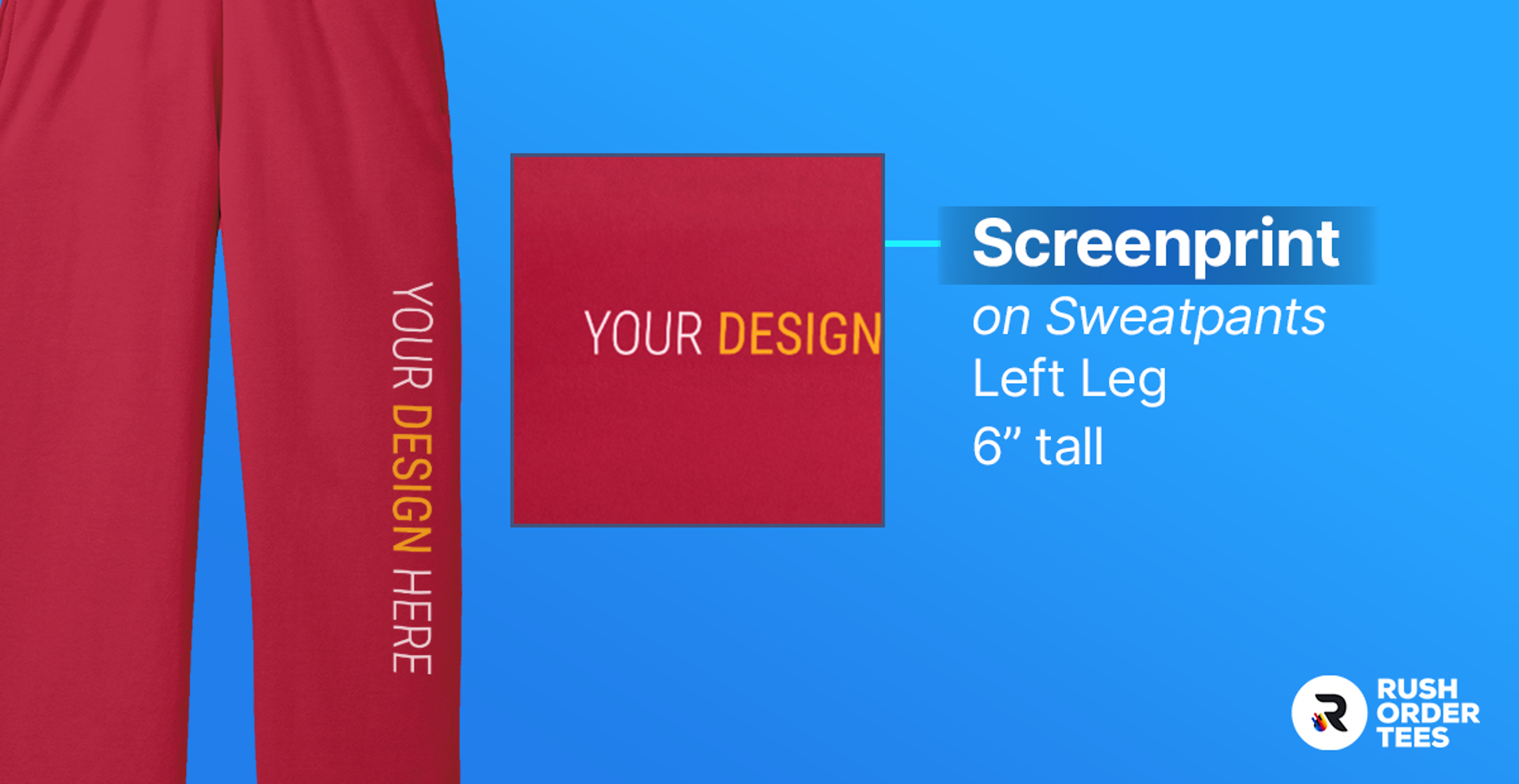 - Placement Ideas: Best for front or back panels on casual joggers, lounge pants, or pajama bottoms where comfort matters more than longevity. Avoid high-wear areas since the print may fade faster than other decoration methods with repeated washing and use.