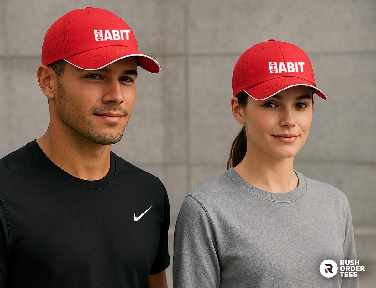 RushOrderTees brings decades of experience decorating performance apparel, with access to top athletic brands like Nike, New Era, and Under Armour. Our in-house decoration team understands the nuances of technical fabrics and moisture-wicking materials, ensuring your logo looks sharp whether it's embroidered, printed, or heat-transferred. We maintain strict quality control specifically for athletic gear, because we know these hats need to perform as good as they look.