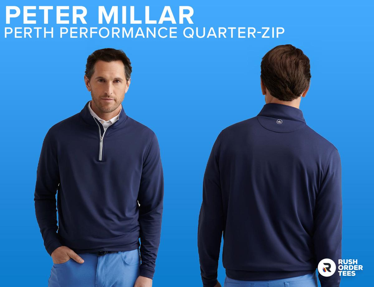 - Customizing: Since the Peter Millar logo takes up the front space, we recommend a small logo embroidered on the back or the side. A small heat press patch can also work.