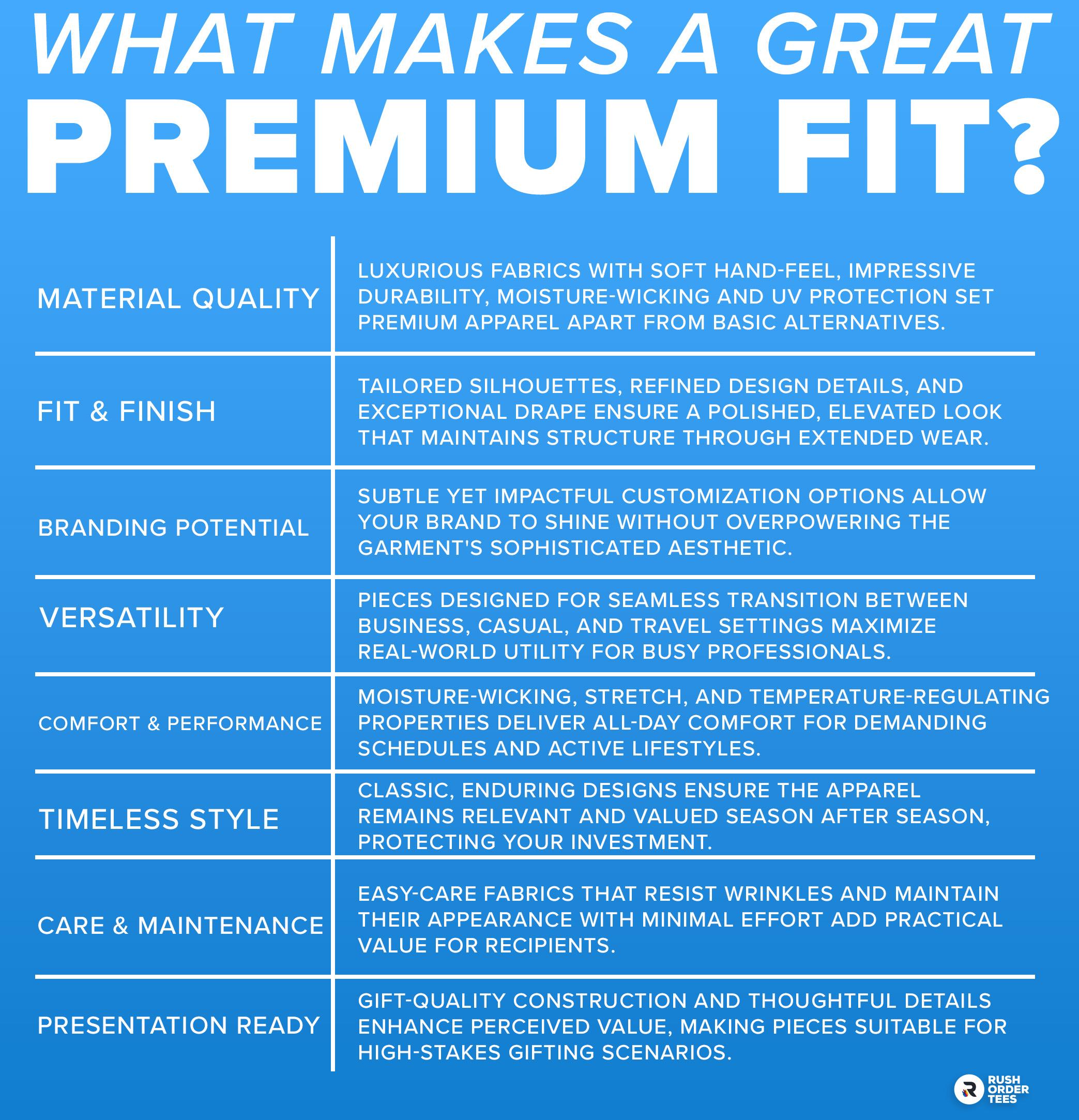- Material Quality: Luxurious fabrics with soft hand-feel, impressive durability, and advanced technical features like moisture-wicking and UV protection set premium apparel apart from basic alternatives.