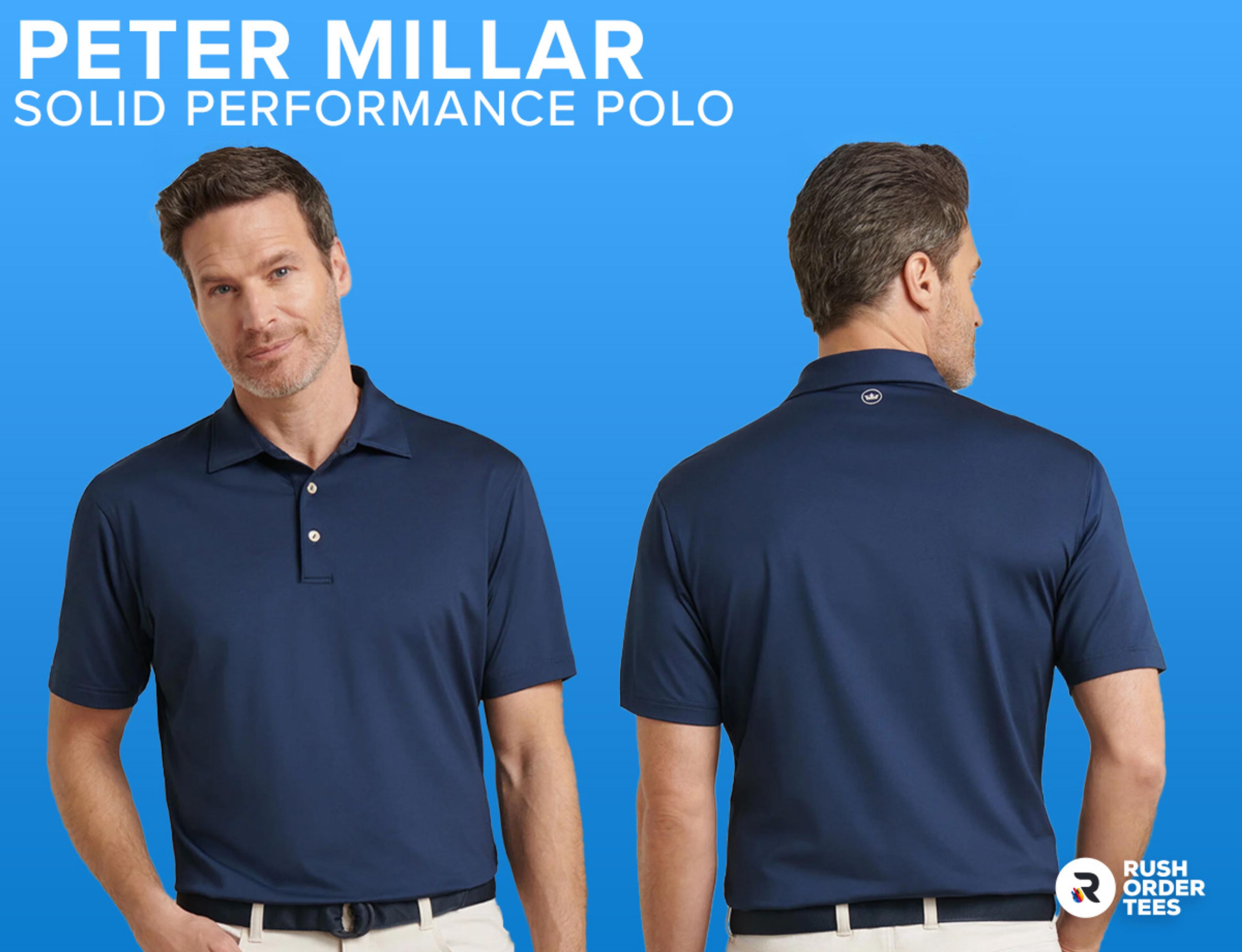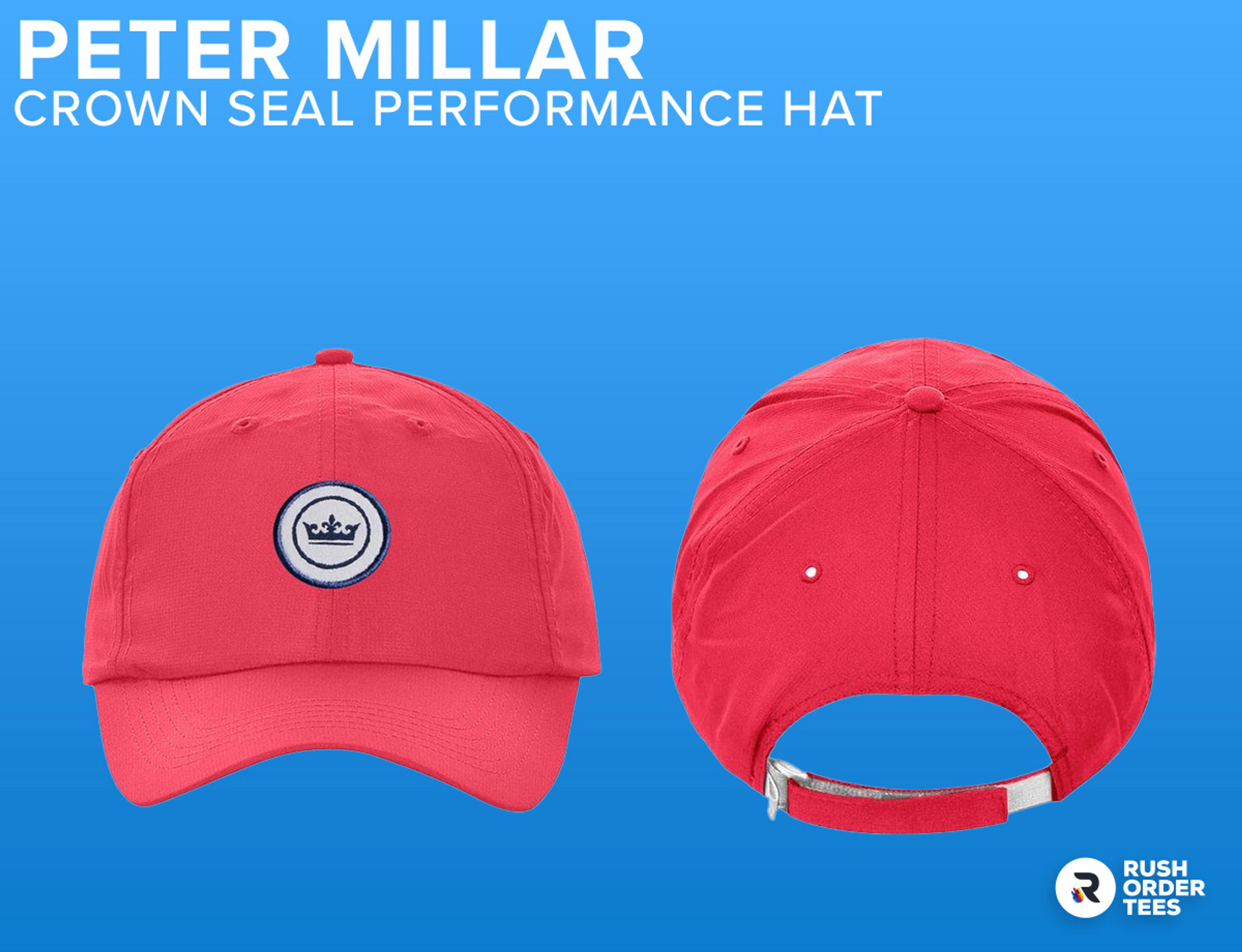 - Customizing: Since the Peter Millar logo takes up the front space, we recommend a small logo embroidered on the back or the side. A small heat press patch can also work.