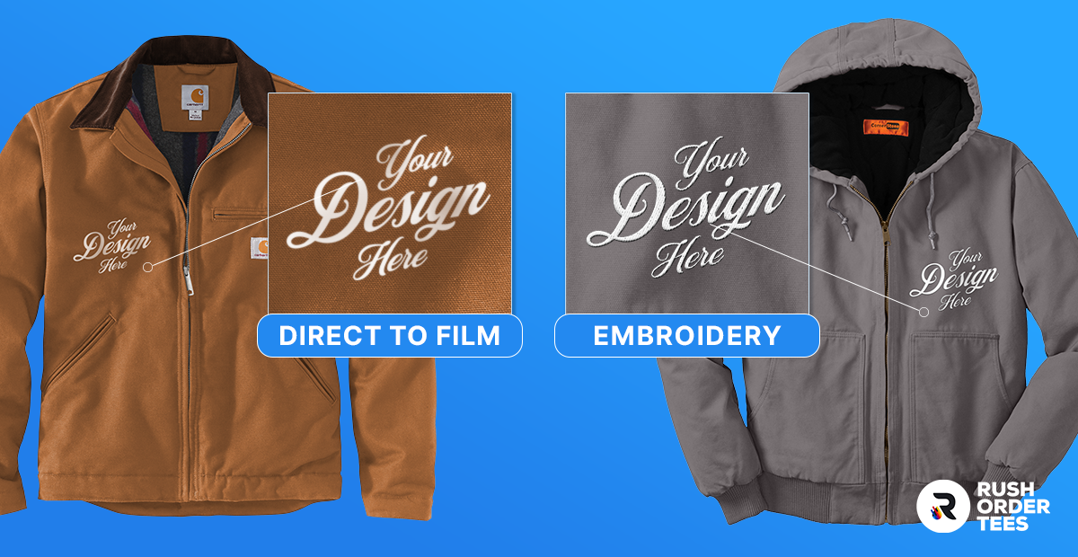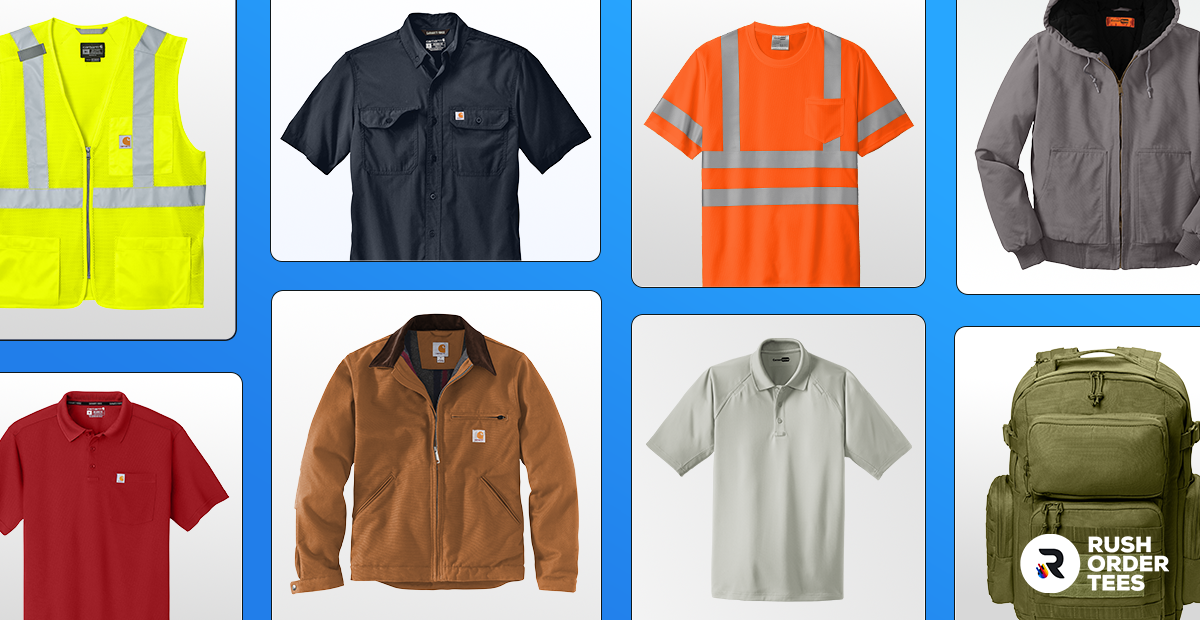 At RushOrderTees, we've customized thousands of workwear pieces from both brands using embroidery, screen printing, and heat transfer methods that withstand jobsite abuse. Our product specialists understand how different fabrics respond to various decoration techniques and can guide you toward the right combination of brand, style, and customization method for your team's needs and budget. We'll help you create custom workwear that works as hard as your people do.