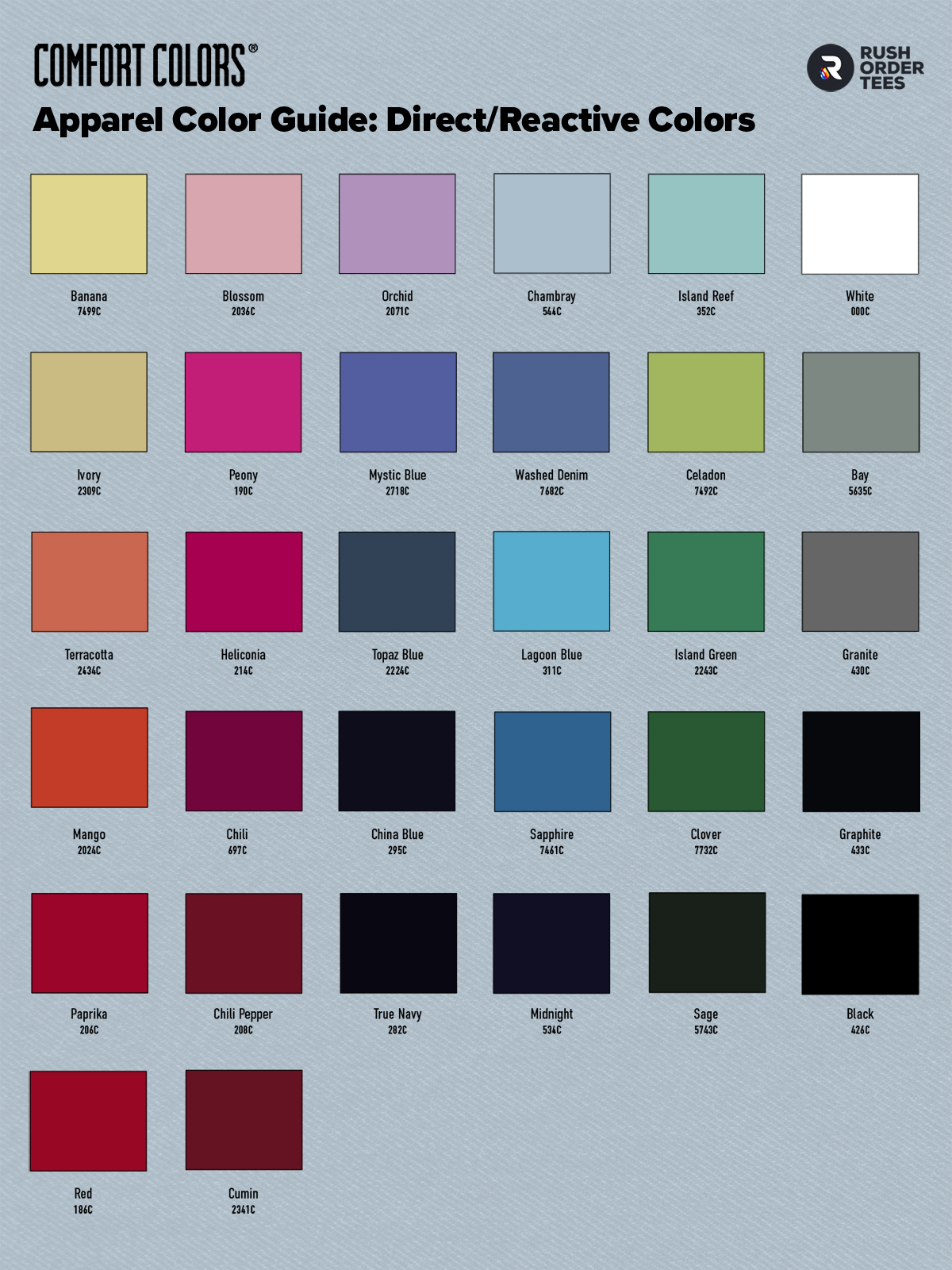 Comfort Colors color chart