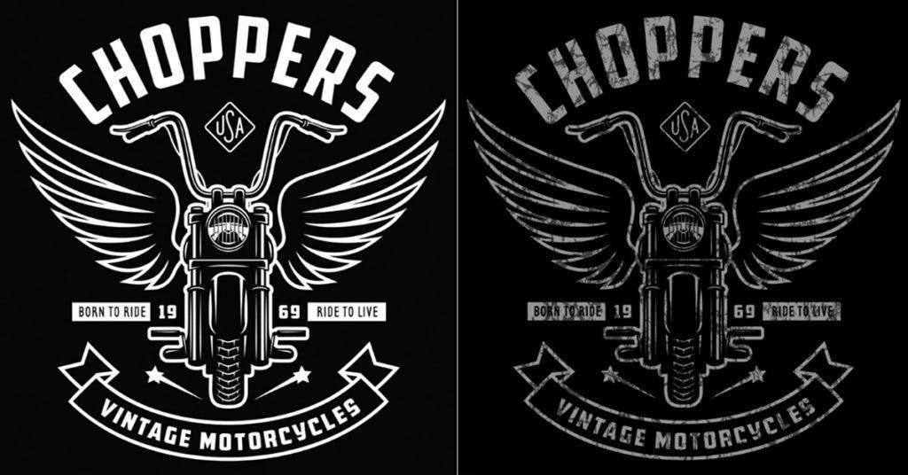 And here’s another one, we’ll call “grunge” and it has an even more stylized effect, but now we’re getting away from a realistic faded looking design. This one might be better suited for a punk band or motorcycle garage.