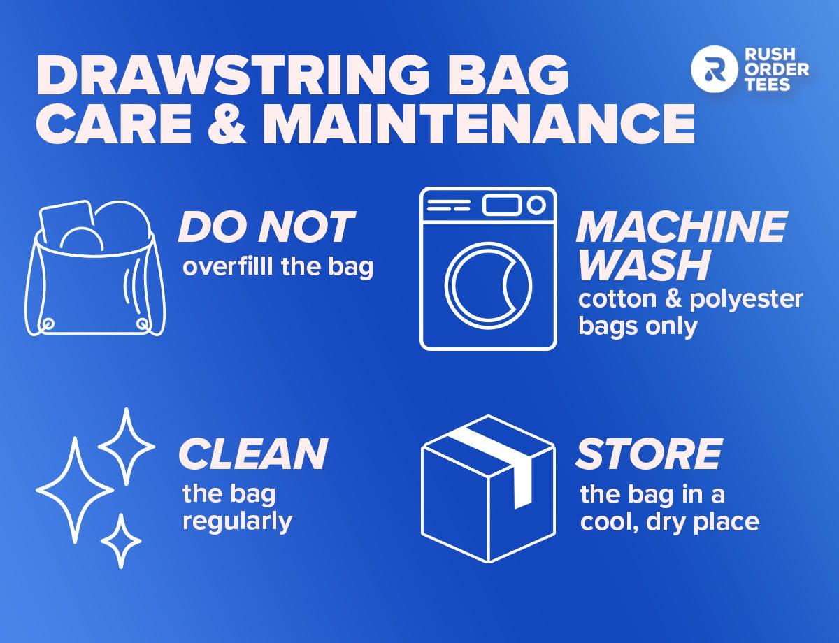 This wouldn’t be a complete guide without a few tips on post-purchase care for your drawstring bags. Regularly cleaning and maintaining your drawstring bags can help them to last even longer.