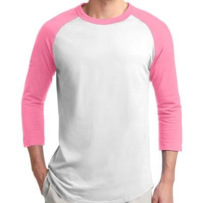 For another t-shirt style option that has a bit of a throwback feel and a little more visual intrigue than a single-color crewneck, consider a baseball tee. With three-quarter sleeves featuring a different color from the rest of the shirt, baseball tees are classic, casual, and instantly recognizable.