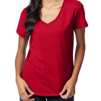 Looking for a slight shift from the usual crewneck? V-necks are essentially exactly the same as a standard t-shirt with one exception: the rounded neckline comes to a point at the center. A standard v-neck offers a similar amount of coverage to a crewneck but is visually a little more dynamic.