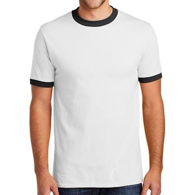 A ringer t-shirt is cut essentially the same as any other crewneck shirt. The difference is that it highlights the neckline and tips of the sleeves with a color that’s distinct from the rest of the shirt. This adds a visually dynamic, retro pop to an otherwise standard t-shirt profile.