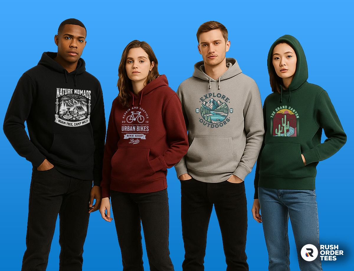 Of all custom apparel, only t-shirts outsell hoodies. But customized hoodies win when it comes to wear time. Think about it: a custom tee might make a few appearances, while a hoodie can become part of daily life. From morning coffee runs to evening campfires, a favorite hoodie (or two or three) stays in constant rotation no matter the climate.