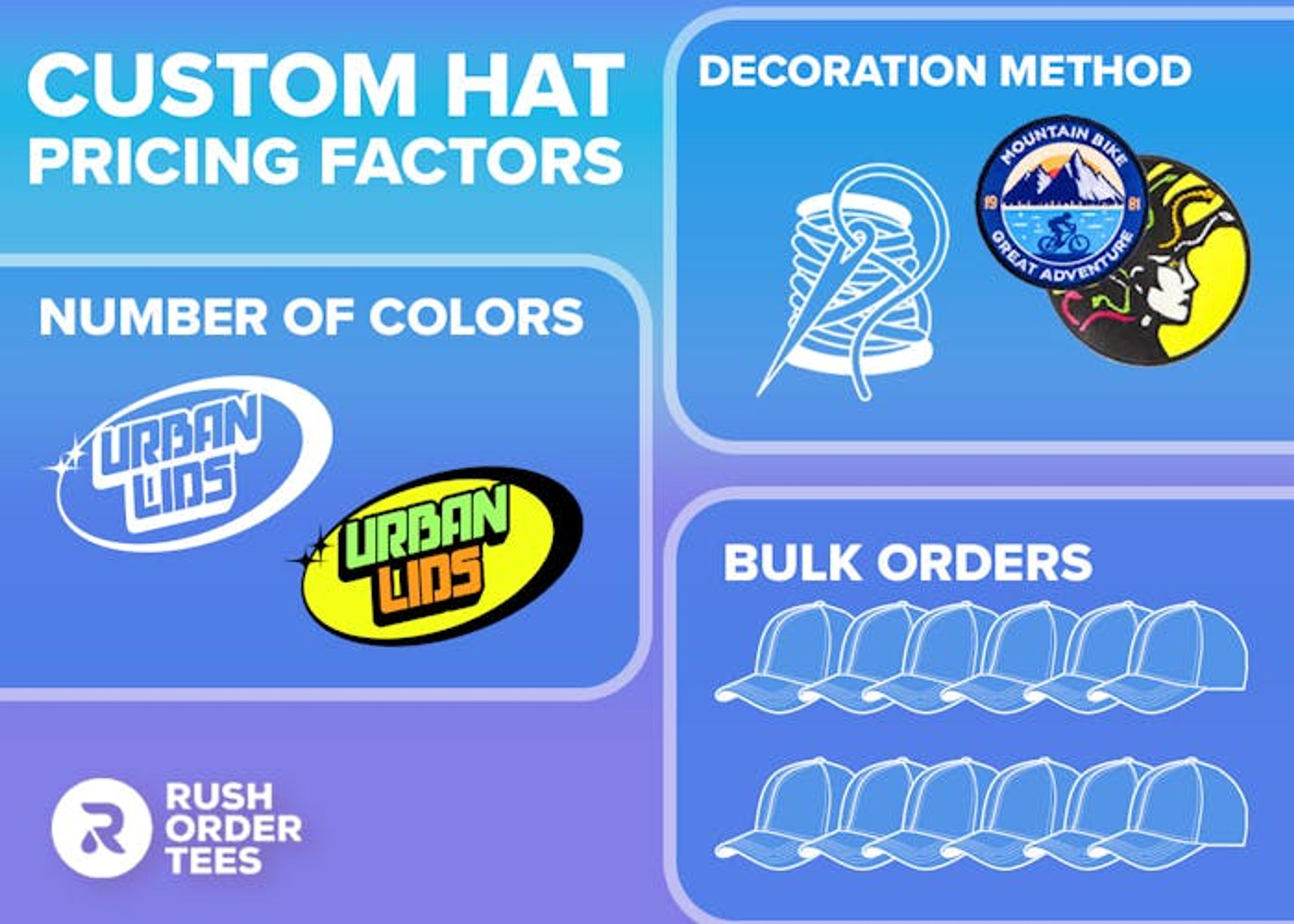 There are a few common methods of decoration for custom hats that can impact the price of the hat.