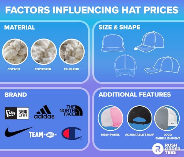 The cost of a hat can be influenced by a number of factors. These can include materials, size and shape, brand and any other additional features that the hat might have (like patches or customizations). In this section, we’re breaking down what these factors are.