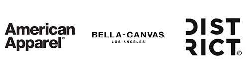 These are the top three premium brands for printing. They make some of the best, most well-designed, and fashion-forward styles on the market. If you order hoodies made by one of these three, you know you're getting high quality. American Apparel tends to have a slightly higher price point, while Bella+Canvas and District offer more competitive and affordable prices.