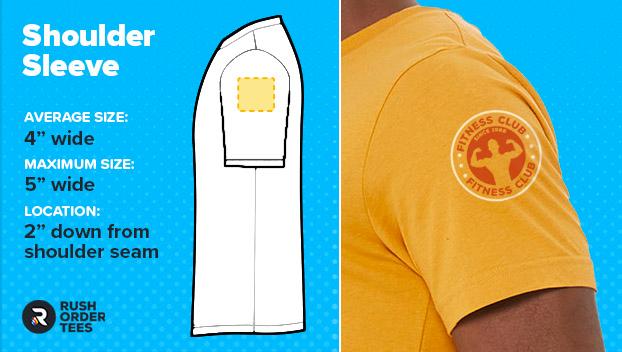 The shoulder is a bold alternative sleeve location. Sized slightly larger than standard at 3" -5" wide, with placement sound 2" down from the shoulder seam. This is not only preferred by the military and first responders, but it's a popular choice for a sporty look.