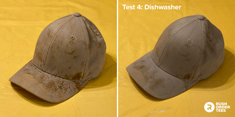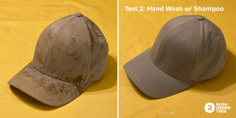 Results: This method barely removed the dirt, leaving stains behind. This was the worst result of the four tests and definitely not the best way to wash a hat.