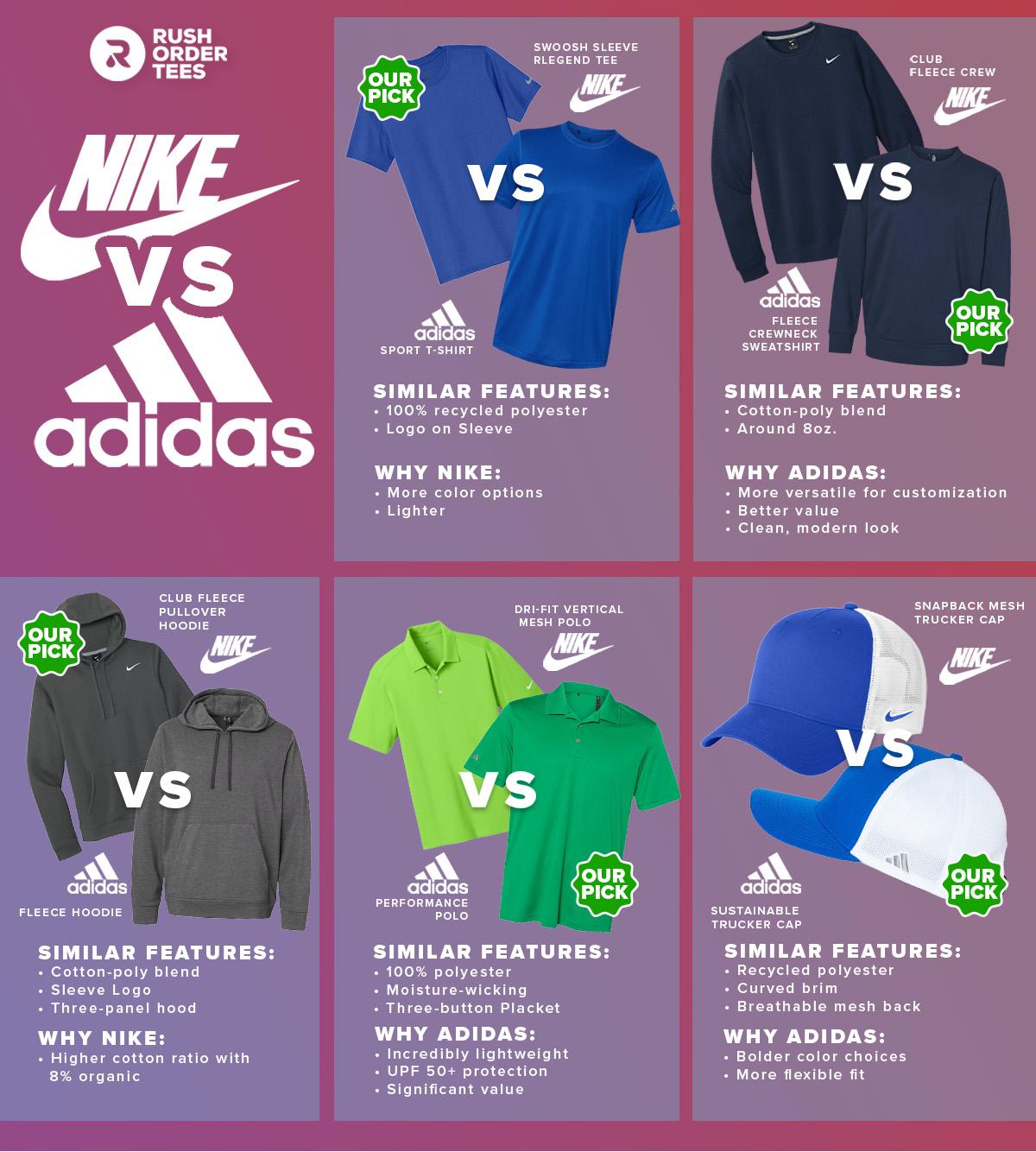 To give you an idea of how Adidas vs. Nike compare on a product-by-product basis, we rounded up some of their most popular competing garments: