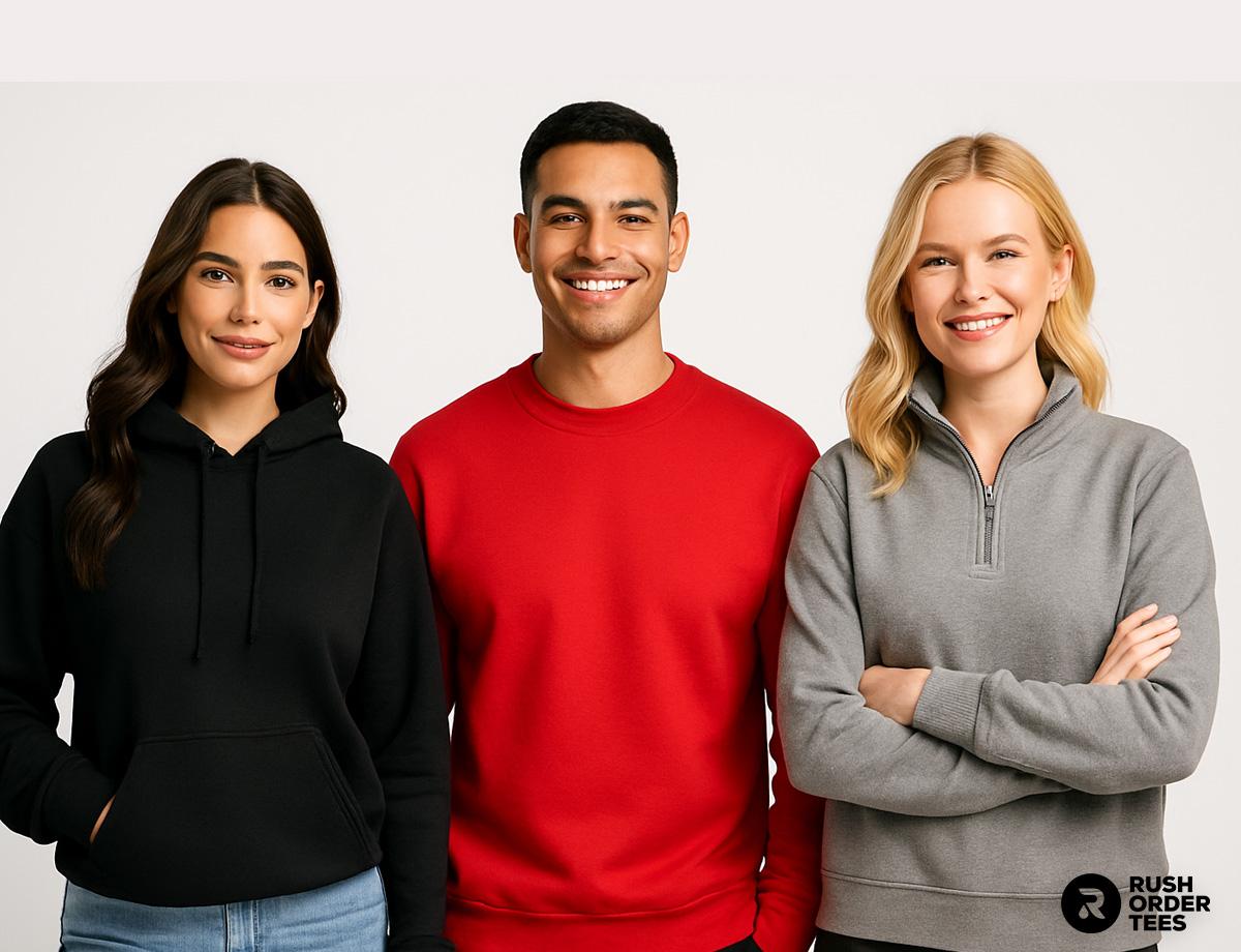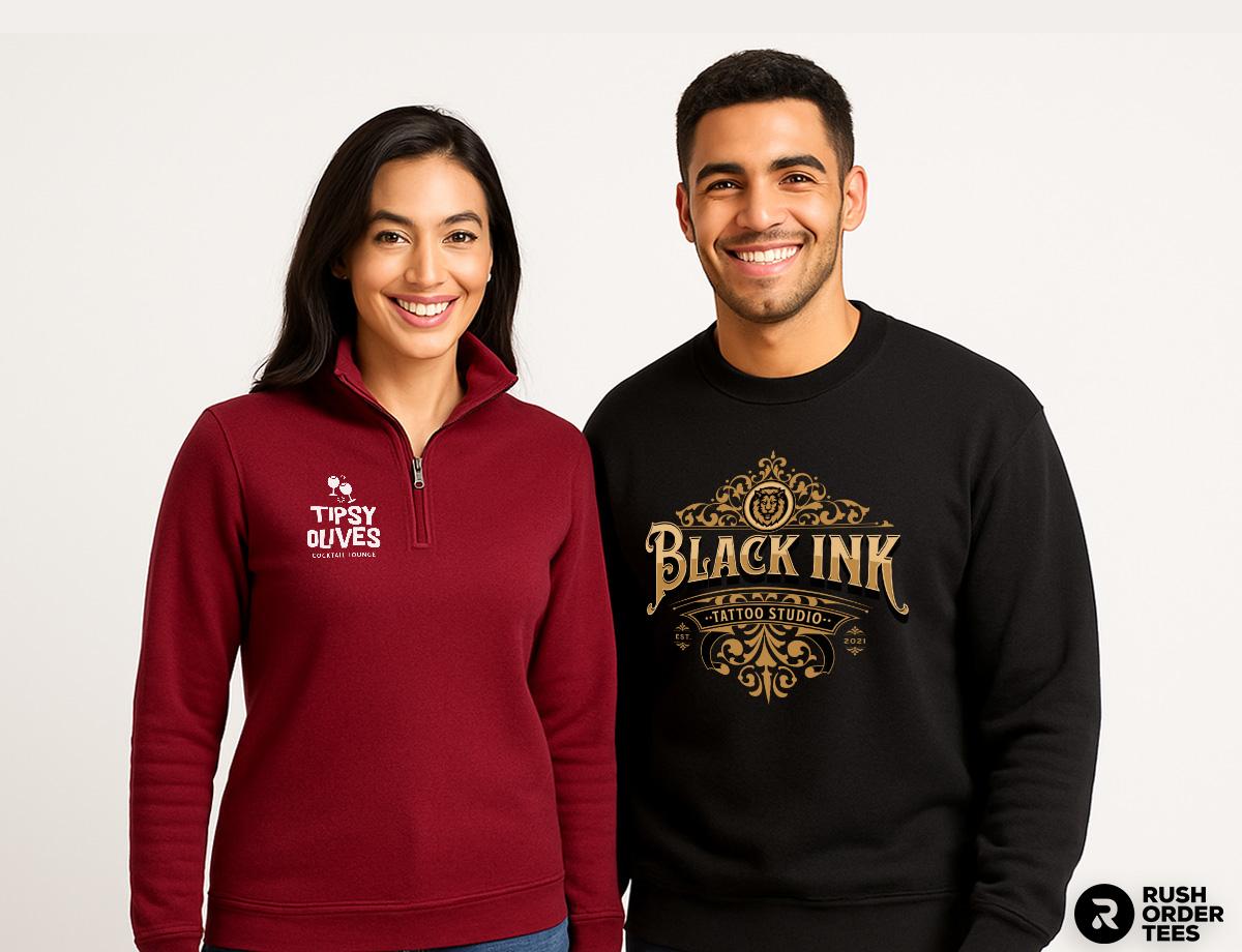 When you're ready to create your perfect custom sweatshirt, our team at Rush Order Tees knows these styles inside and out, and we're here to help you choose the right one for your needs—whether you're ordering for yourself, your team, or your brand. With options from leading manufacturers and expert decoration services, we'll make sure your sweatshirt looks as good as it feels.