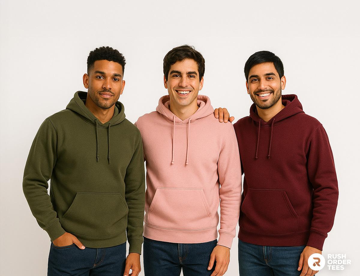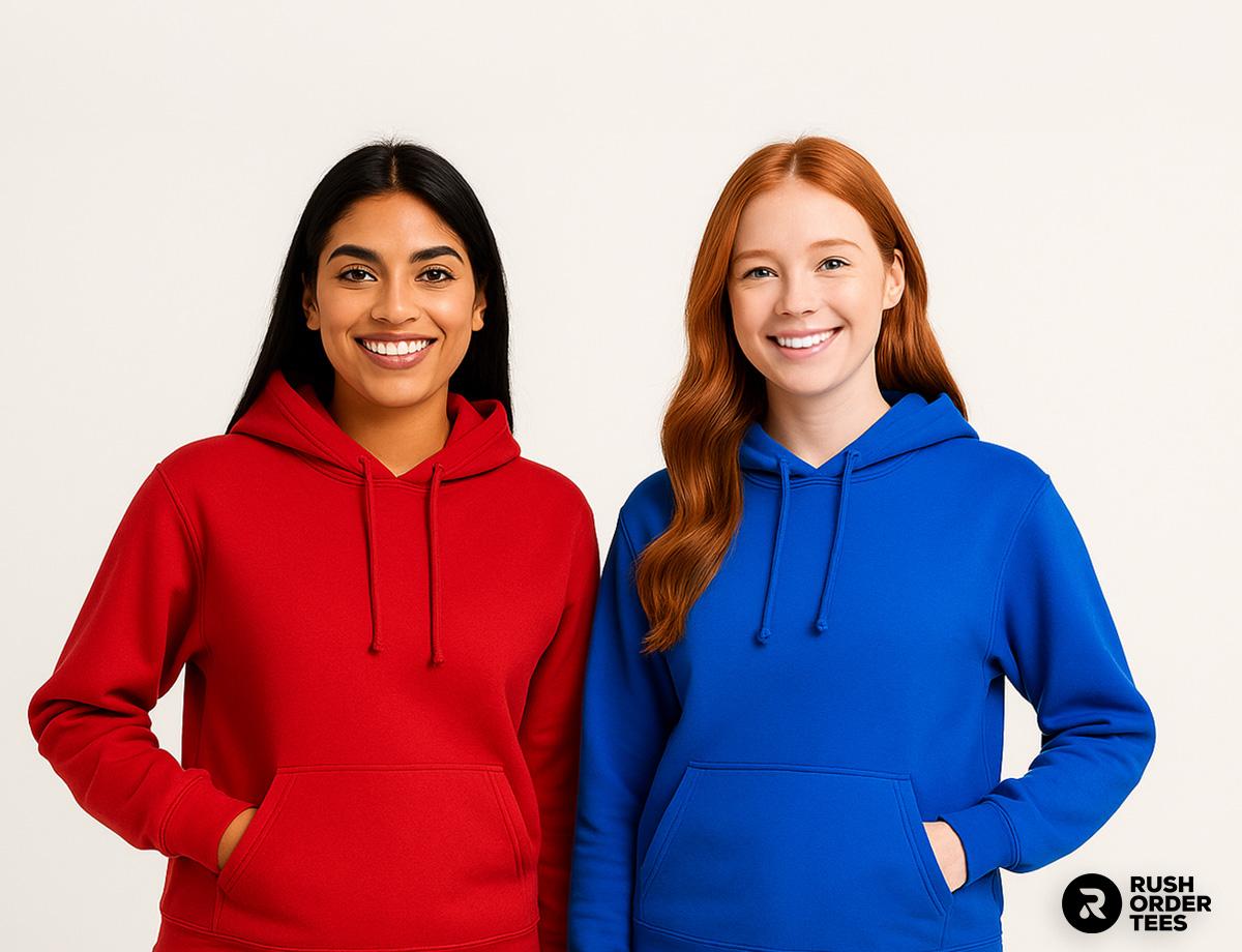 Customization: Pullovers present some unique opportunities and challenges. That front pocket limits your main print area, but wider designs like team names or horizontal logos work beautifully across the chest. Many decorators focus on bold back designs or get creative with pocket prints and hood accents. Just remember the pocket creates a natural boundary for your artwork—anything too tall will look cramped.