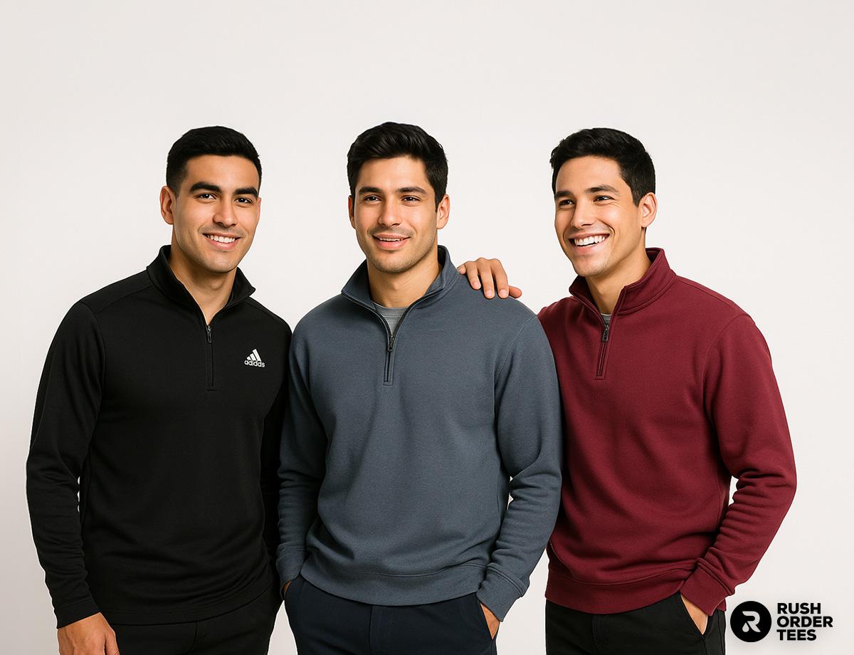 Customization: Quarter-zips tend to keep things understated. An embroidered left chest logo is the go-to choice, perfectly matching the style's more refined aesthetic. While some lightweight versions can handle small prints, most decorators stick to embroidery—it adds that extra touch of quality that quarter-zip wearers tend to appreciate.