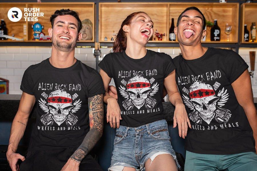 Examples: A jazz band creating t-shirts featuring their logo and a catchy tune title, a rock band selling shirts with their mascot or emblem, or a choir offering t-shirts displaying a musical quote.