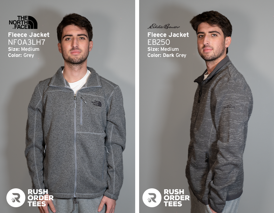 For overall quality construction, The North Face comes ahead here, but if you're looking for more value on bigger orders of custom fleeces, Eddie Bauer could make more sense.