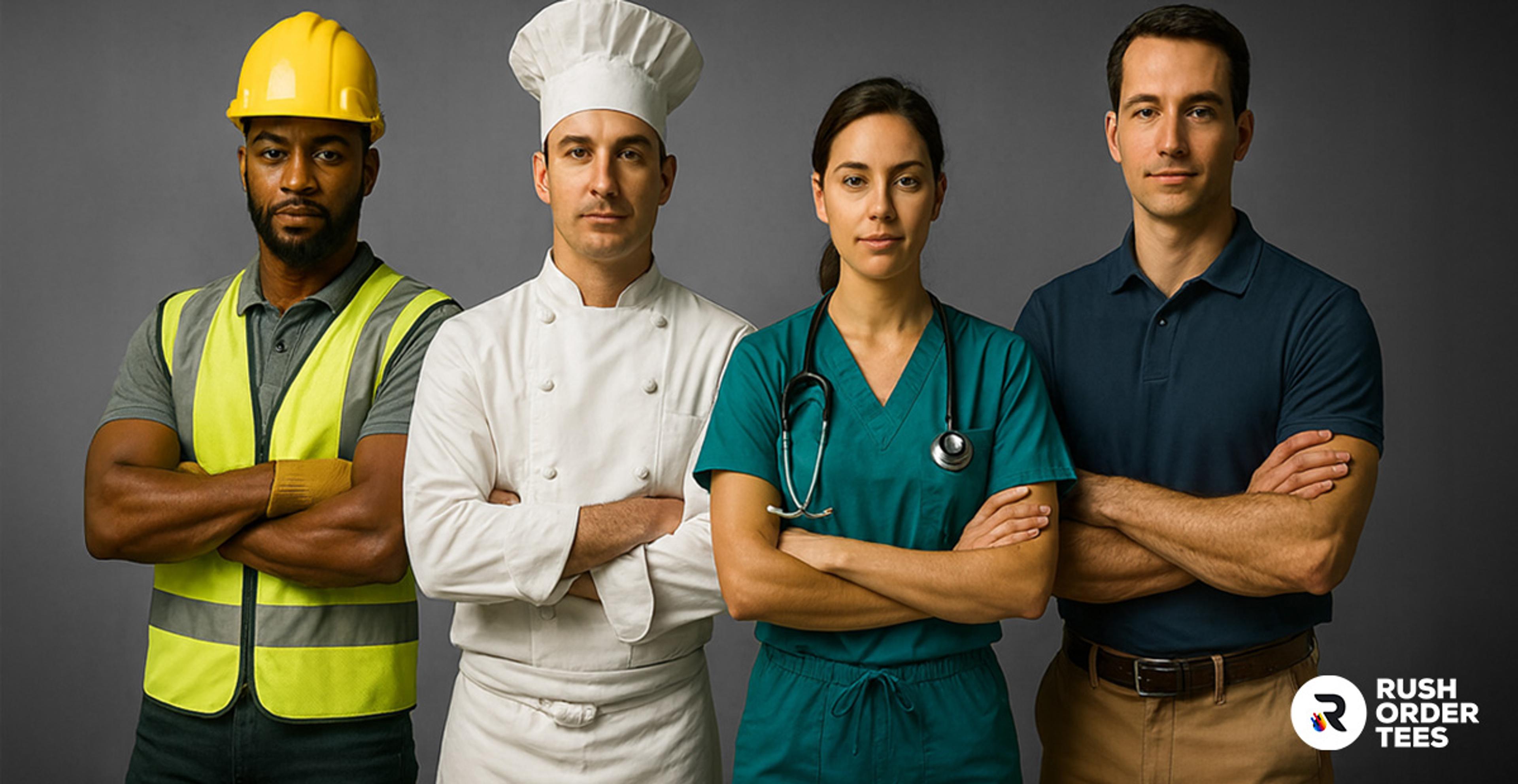 At RushOrderTees, we're experts at customizing workwear of all kinds and always help customers walk through the entire process—from picking the right products for your specific work environment to optimizing artwork for maximum durability and impact. Whether you're outfitting a small crew or hundreds of workers, we'll guide you toward the perfect combination of garments, decoration methods, and branding strategies that work as hard as your team does.