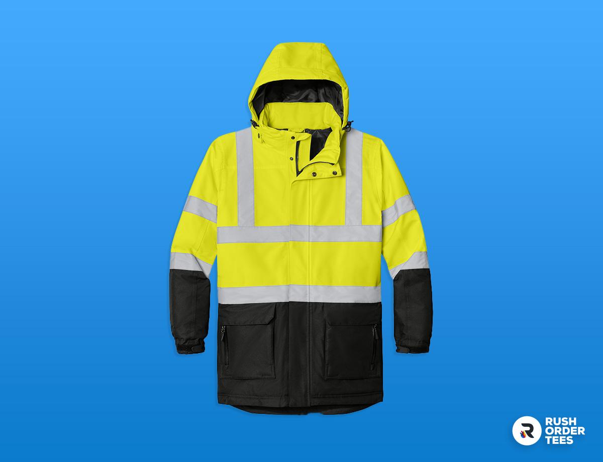 • Account for high-visibility regulations on safety jackets. Custom decoration on ANSI-rated safety jackets must not obscure reflective striping or reduce the garment's compliant background material below required minimums. Prioritize visibility and compliance over large graphics—see our guide to high-visibility workwear for detailed requirements and best practices for decorating safety apparel.