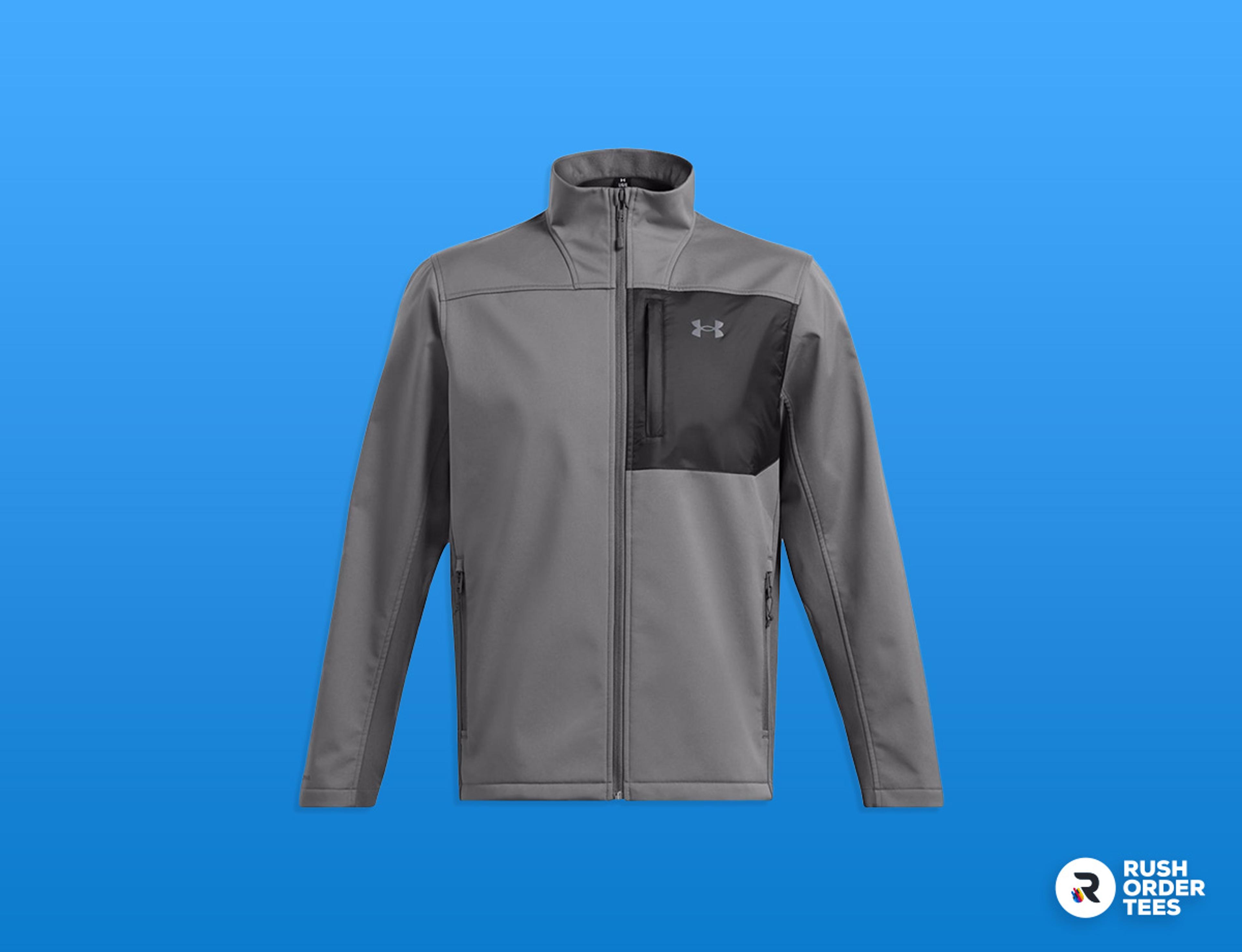 Bonded 3-layer softshell (100% polyester), windproof and water-resistant with UA Storm technology and fluorine-free DWR. Features a ColdGear® Infrared lining for thermo-conductive heat retention, 4-way stretch for mobility, zip hand and chest pockets, and drawcord-adjustable hem.