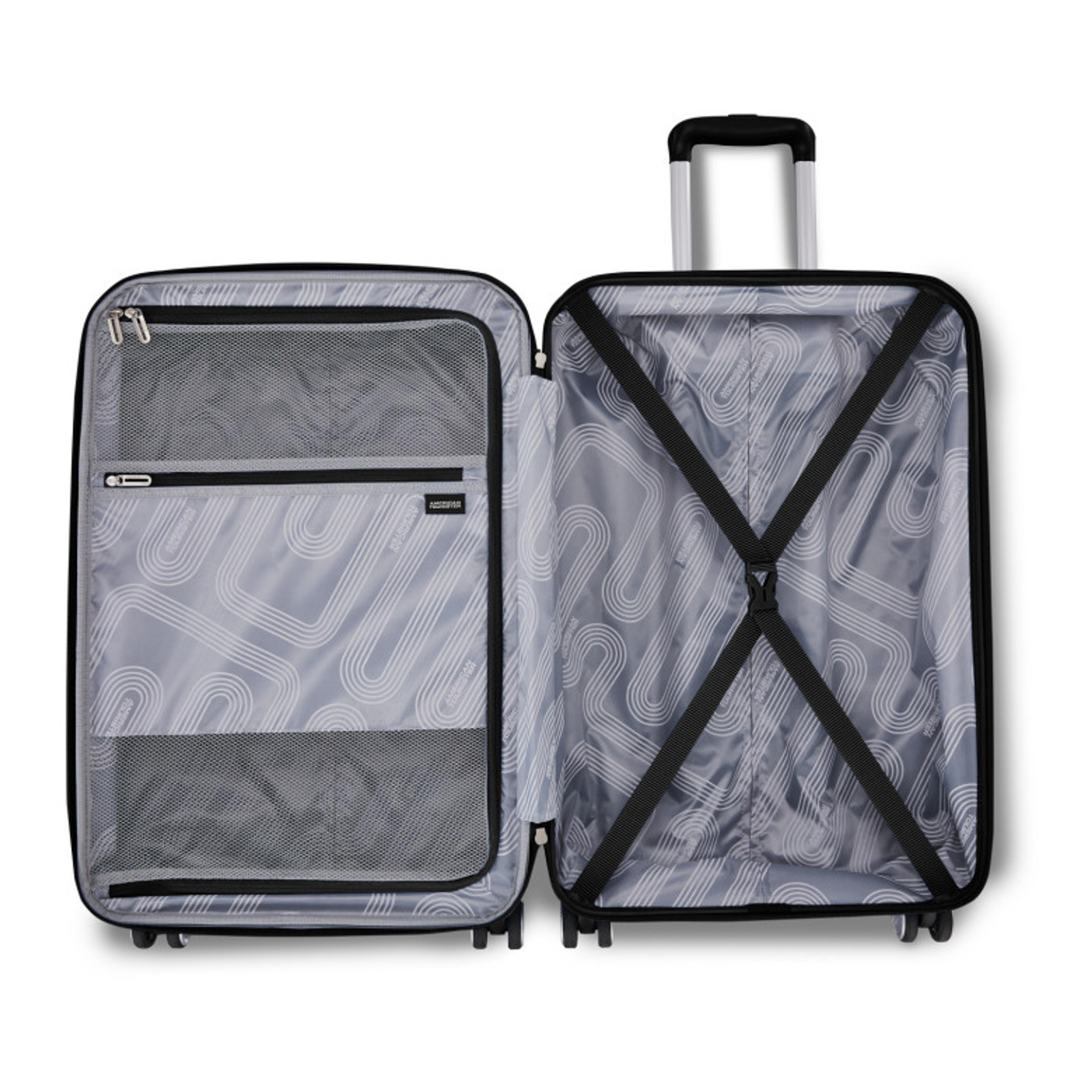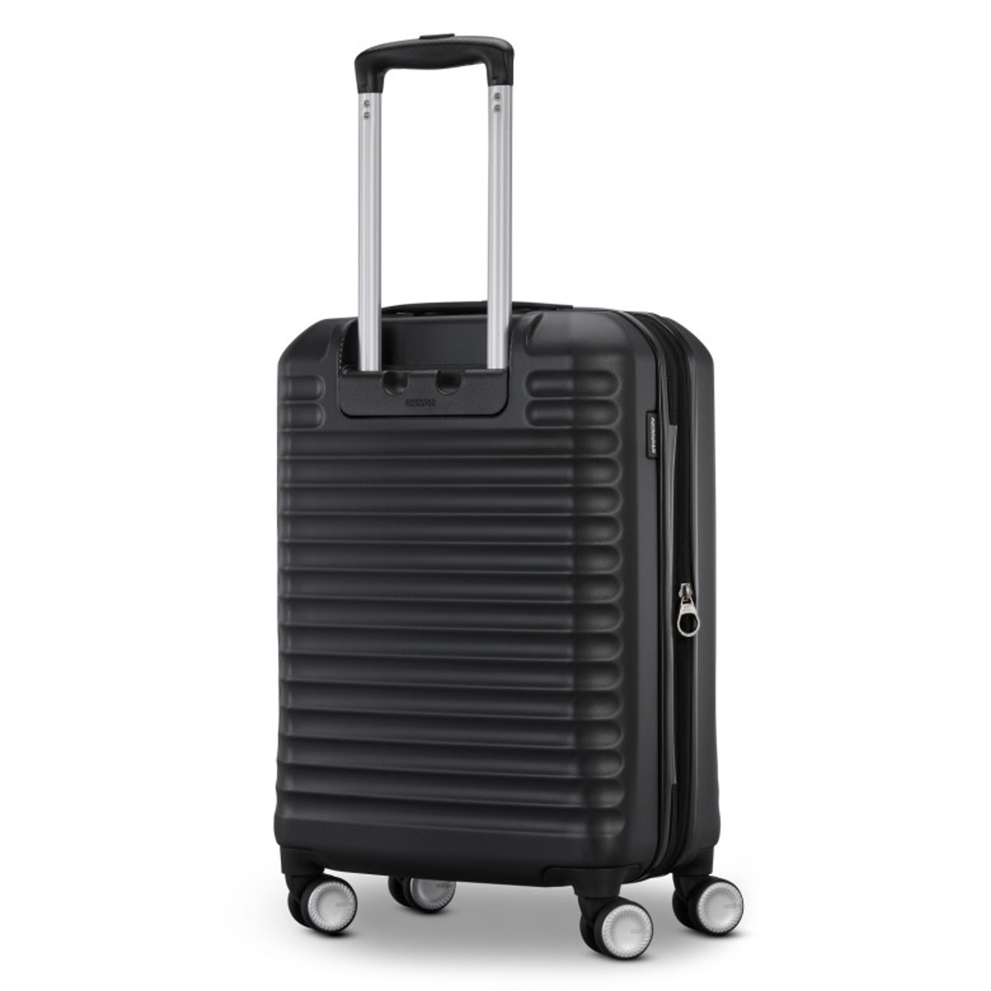 Travel smarter with this sleek, durable luggage that combines strength and style through its eye-catching horizontal ABS exterior pattern. The innovative New-Eazyhook™ feature, molded directly into the trolley bezel, keeps your hands free and your essentials close. The adjustable Right Height™ trolley handle offers multiple height settings for personalized comfort, while wide extended fenders between the wheels reduce torque and add stability. Inside, you’ll find a thoughtfully designed layout with a mesh U-shaped zippered divider, lining pocket, and ribbed elastic cross straps—all in a lightweight 7.3 lb design.