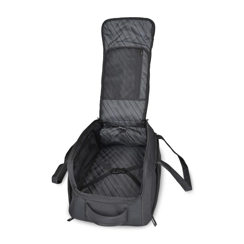 Designed for versatility and convenience, this bag features a large U-shaped zippered opening for easy access to the spacious main compartment. Interior mesh pockets and a front zippered pocket with a lined tablet sleeve keep your essentials organized, while dual side mesh pockets and a separate shoe tunnel add practical storage options. A rear padded pocket safely fits up to a 16” laptop, and the tuckaway shoulder and duffel straps make it easy to carry your way. Complete with a trolley strap, padded back handle, and adjustable shoulder straps, this PVC-free bag is built for comfort, organization, and travel-ready functionality.