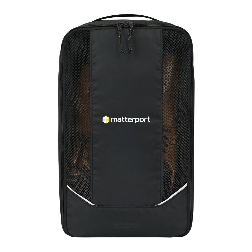 Keep shoes organized and travel-ready with the American Tourister Zoom Turbo Shoe Bag. Designed for life on the move, this lightweight shoe bag keeps footwear separate from clothing while protecting the rest of your gear. Breathable air mesh panels promote airflow to help reduce moisture and odors, making it perfect for gym sessions, travel, work, or everyday activities. Made from durable 210D rPET material with a convenient top grab handle, this compact travel shoe bag is easy to carry or pull from a larger duffel or suitcase. The wipeable interior allows for quick cleaning, making it a practical choice for athletes, commuters, and frequent travelers.