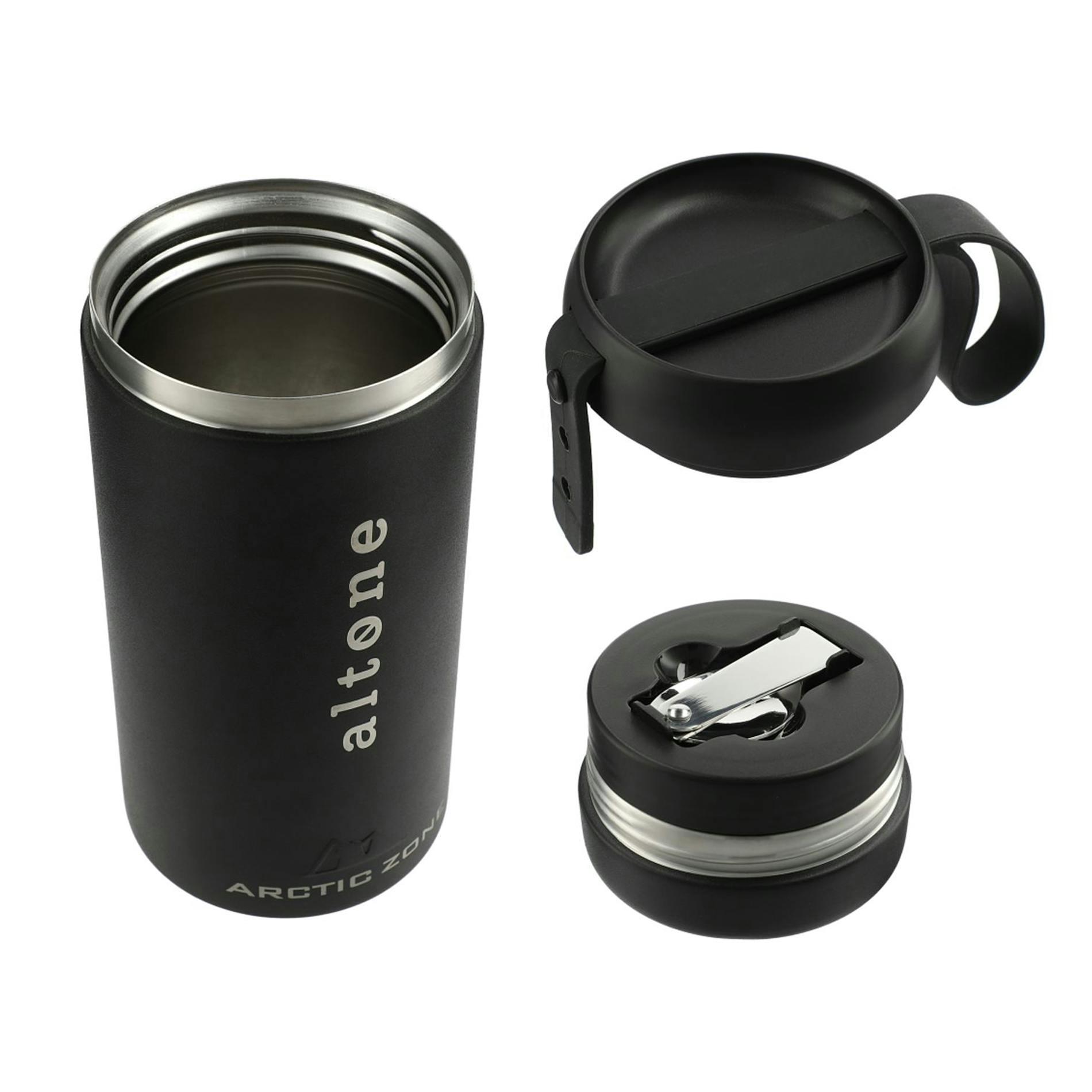 The innovative, on-trend Arctic Zone® Titan 20oz Meal Container is copper-insulated and holds 560ml, with a detachable snack storage space that holds an extra 150ml. It includes a foldable spoon that conveniently stores on the lid of the snack container. It also includes an adjustable silicone strap. Keeps food cold for up to 24 hours and hot for up to eight.