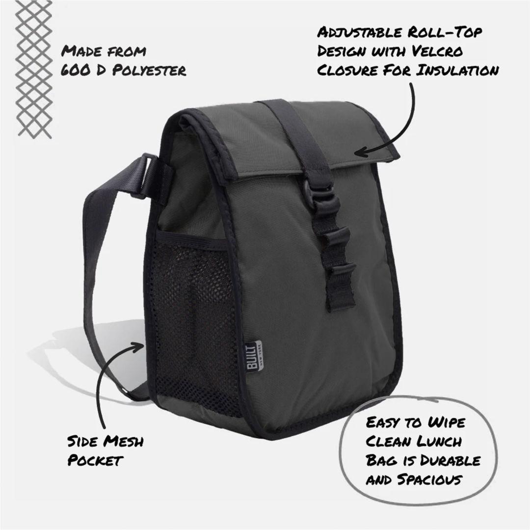 The BUILT Crosstown Lunch Bag puts a modern spin on the classic brown bag, offering both style and function for meals on the go. Crafted from durable 600D polyester, this insulated bag keeps food and drinks fresh with its adjustable roll-top design and secure Velcro closure. A side mesh pocket holds a water bottle or snacks, while the adjustable crossbody strap provides hands-free carrying. Spacious enough to hold up to 9 cans, this BPA-free bag also folds flat for easy storage when not in use.