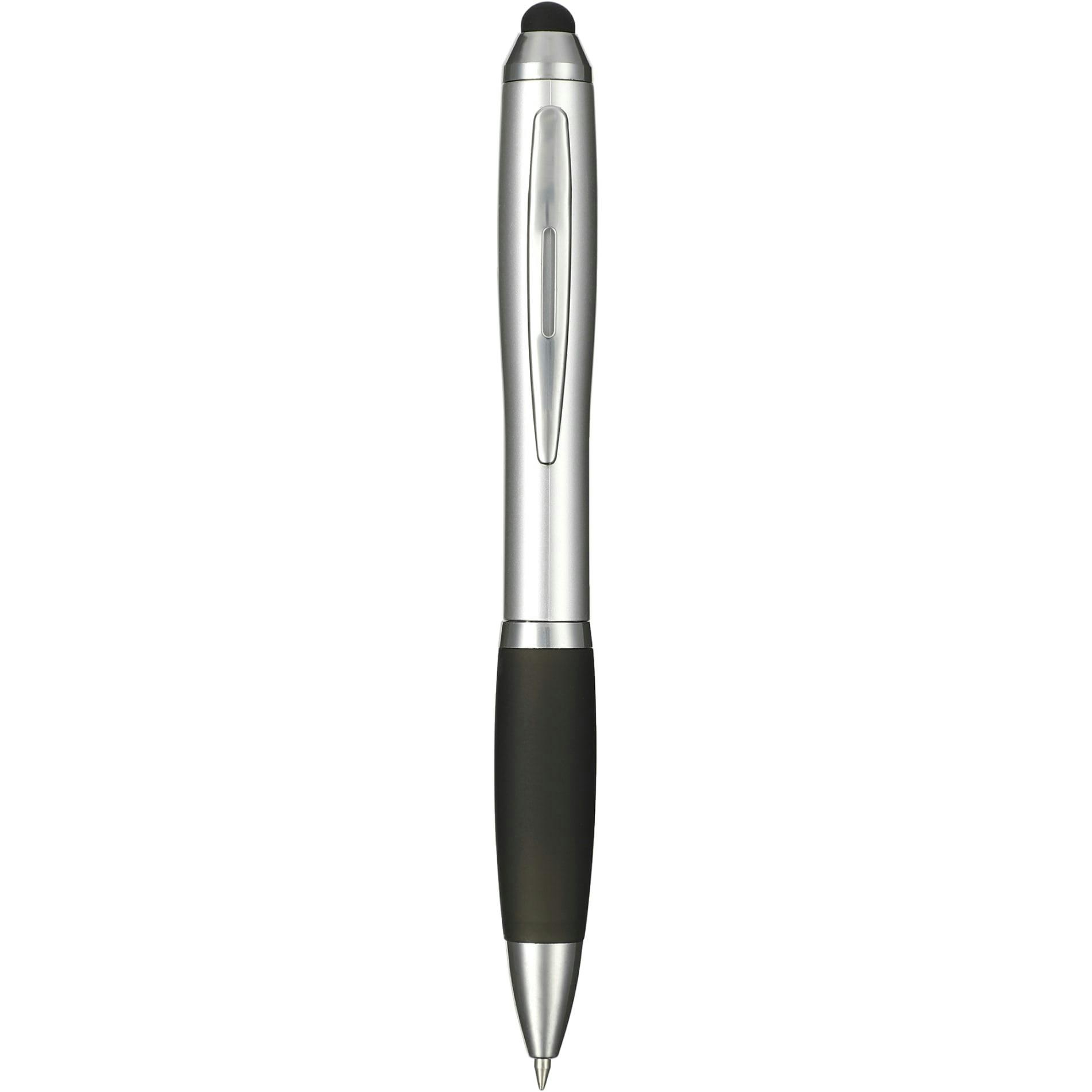 The Nash Gel Stylus Pen features a twist-action ballpoint pen with a soft rubber stylus for touchscreen devices. Includes ultra smooth, black gel ink cartridge, colorized rubber grip and 0.7mm pen tip.