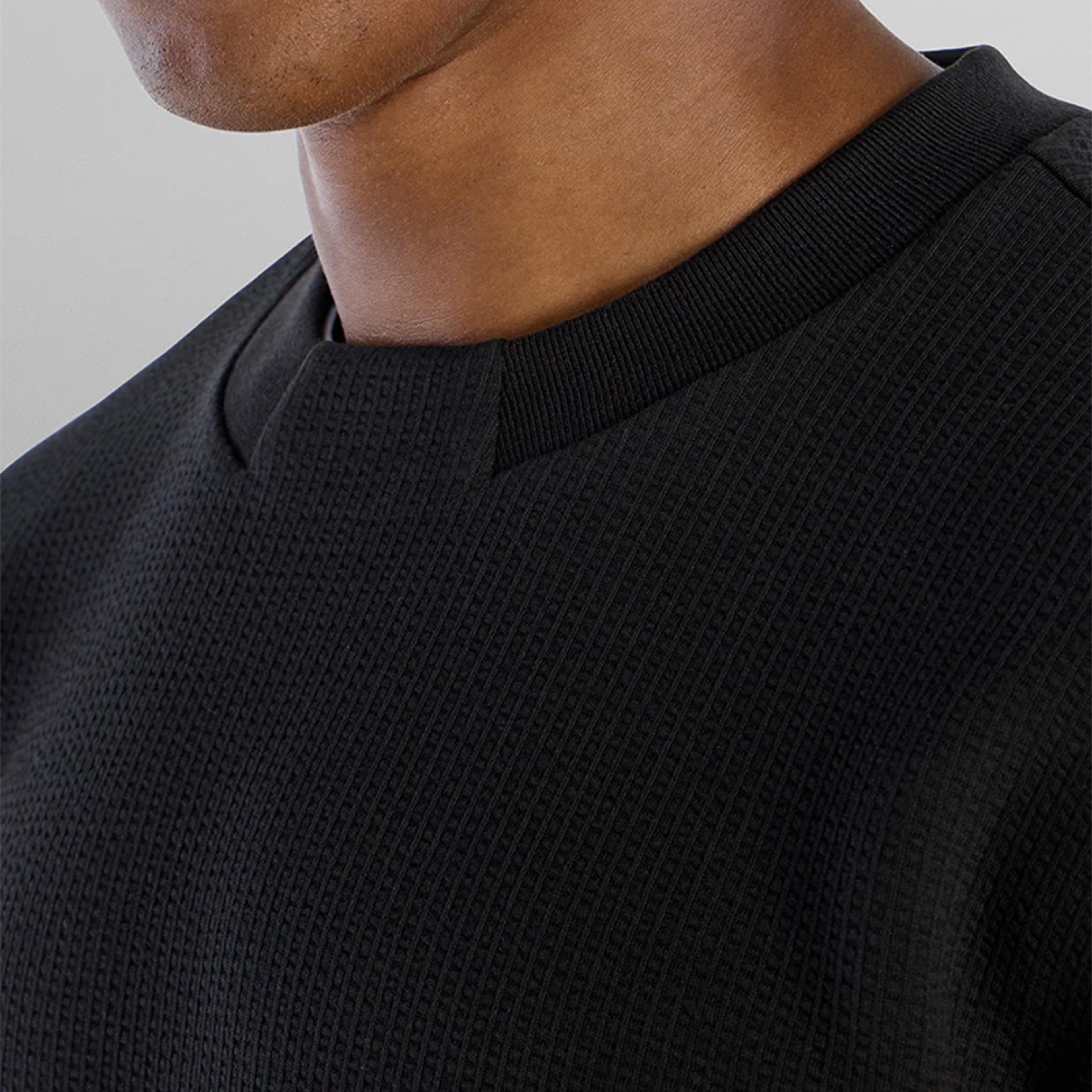 Designed for comfort on the move, the BYLT Recharge Crewneck blends relaxed style with performance-driven features. Made from a soft double-knit fabric with a subtle geometric texture, this versatile crewneck offers flexible stretch and wrinkle-recovery—perfect for travel, commuting, or everyday wear. Lightweight warmth and UPF 50+ protection make it an ideal layer for year-round use. The relaxed, true-to-size fit pairs effortlessly with joggers or denim, while ribbed details at the collar, cuffs, and hem add a clean, modern finish. Whether you’re catching a flight or heading out for the day, this performance crewneck delivers comfort, durability, and polished style.