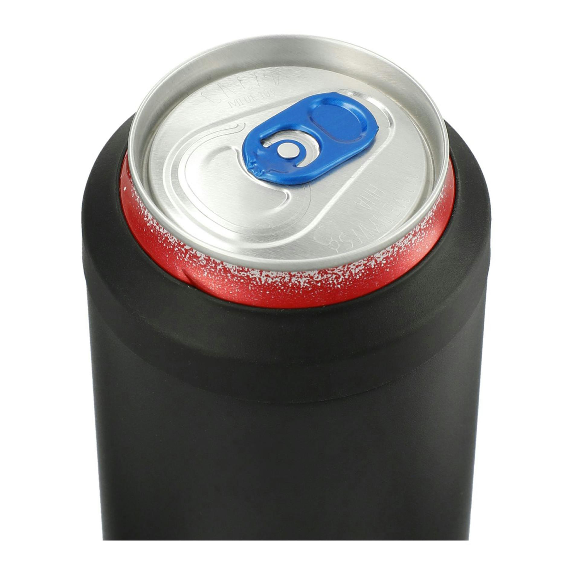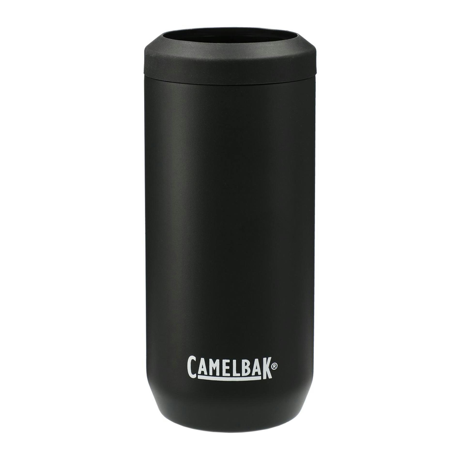 Warm summer nights by the campfire are even better with the CamelBak 12 oz. Slim Can Cooler. This ultra-convenient vacuum-insulated can cooler is able to easily fit a variety of can and bottle sizes, keeping your beverage well-protected and extra cold. It features non-slip twist-lock collar, as well as a non-slip silicone base. It is constructed with double-wall 18/8 stainless steel material and sweat-proof vacuum insulation in between. This 12oz can cooler comes with a durable powder coating and it is BPA-free. Fits most standard 12oz slim beer or seltzer cans.