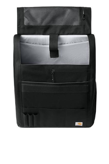 Turn your vehicle into a streamlined, on-the-go workspace with the Carhartt Universal Seat Organizer, built tough for life on the road. Crafted from rugged 600D polyester and treated with Rain Defender® DWR, it protects your essentials from spills, moisture, and daily wear. The wide hook-and-loop back panel secures easily to your seatbelt, while the non-slip base keeps everything firmly in place, even on bumpy rides. With smart storage for every tool and device—including a spacious main compartment, dedicated laptop/tablet pocket, multiple zippered sections, pen holders, utility sleeves, and a stretch water bottle pocket—this organizer keeps your gear accessible and your cab clutter-free. A convenient carry handle lets you transport it from vehicle to jobsite without breaking stride. Perfect for contractors, service professionals, commuters, and anyone who works from the road.