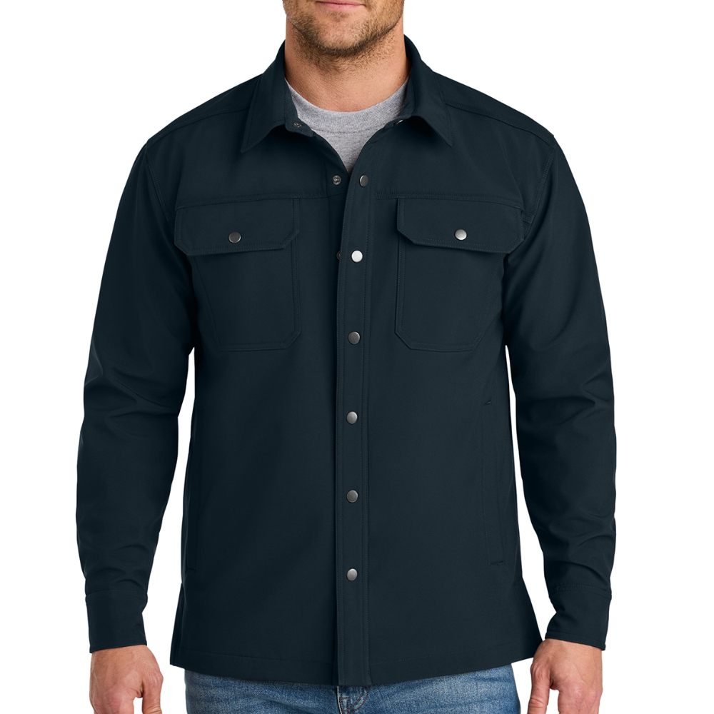 Built for versatility and everyday performance, the CornerStone Soft Shell Shirt Jacket delivers the perfect balance of lightweight protection and all-day comfort. Featuring a water-resistant shell and soft fleece lining, it keeps you warm and dry through changing conditions. Designed with a work-ready look and durable construction, this shirt jacket includes multiple pockets for storage and adjustable details for a custom fit. Ideal for layering on the job, commuting, or outdoor wear, it’s a dependable choice for workwear, team apparel, and branded outerwear.