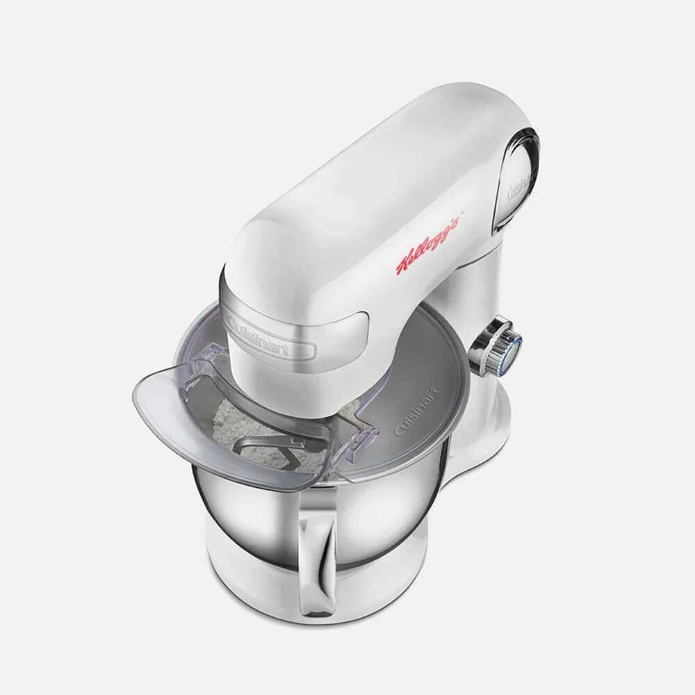 Delivering power, precision and performance, our stand mixer features a 500-watt motor, die-cast metal construction, and 12 speeds that allow for nuance and excellence in performing a variety of preparation tasks. The unit's tilt-back head allows for easy access to its 5.5-quart mixing bowl, while the included splash guard prevents messy countertops. Also included are a chef's whisk, dough hook, and flat mixing paddle. The mixing bowl and all accessories are dishwasher safe. Additionally, you can purchase a variety of attachments for the unit: a pasta roller and cutter, pasta extruder, meat grinder, frozen dessert maker, and spiralizer.