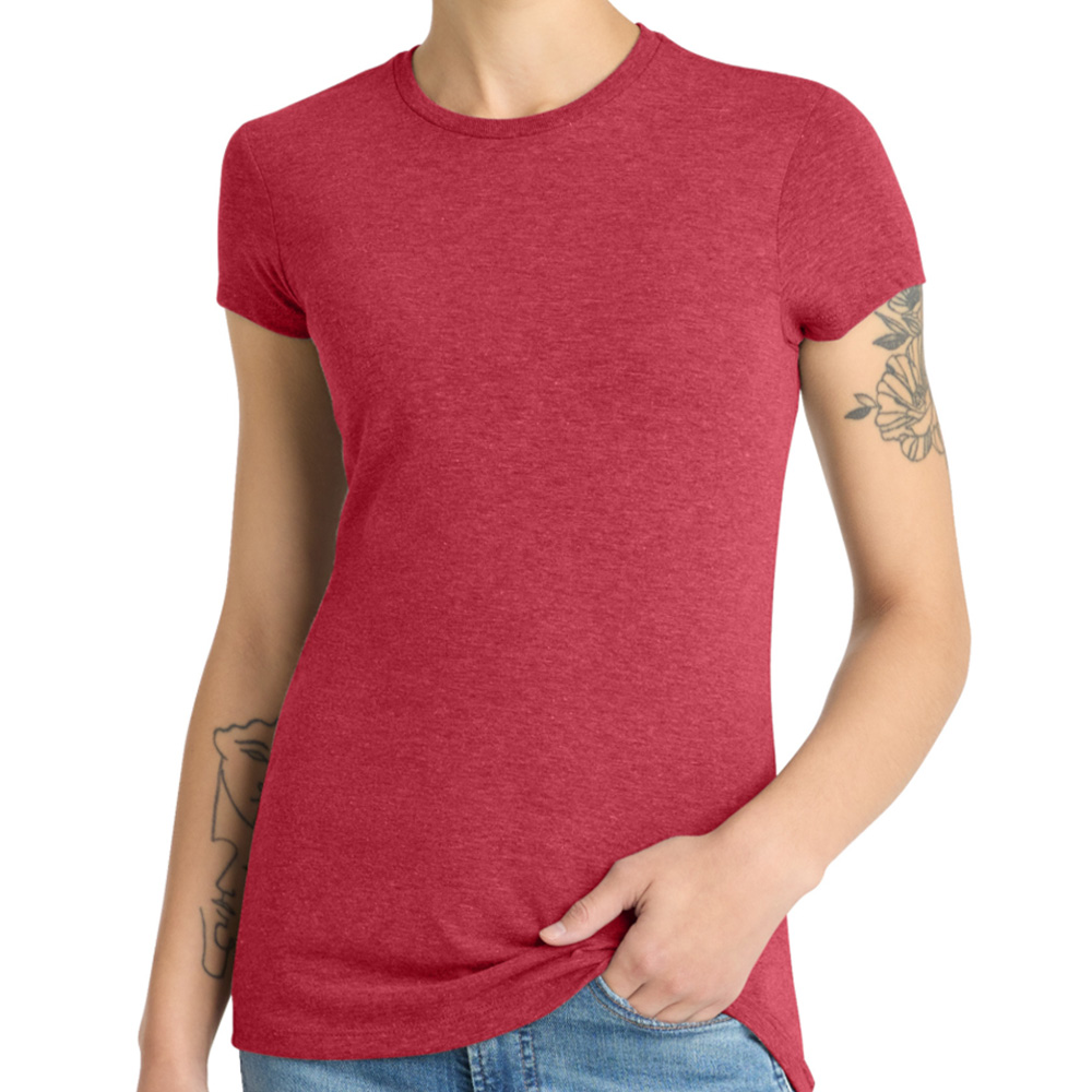 Flattering, soft, and made to move with you, the District Women’s Fitted Perfect Tri Tee delivers a sleek silhouette with premium comfort. Crafted from a lightweight tri-blend fabric, it offers a silky-smooth feel with just the right amount of stretch for all-day wear. Designed with a form-fitting cut, this tee is perfect for layering, casual outfits, or custom branded apparel. Its smooth surface makes it ideal for printing, while durable construction ensures it keeps its shape wear after wear. Size up for a more relaxed fit
