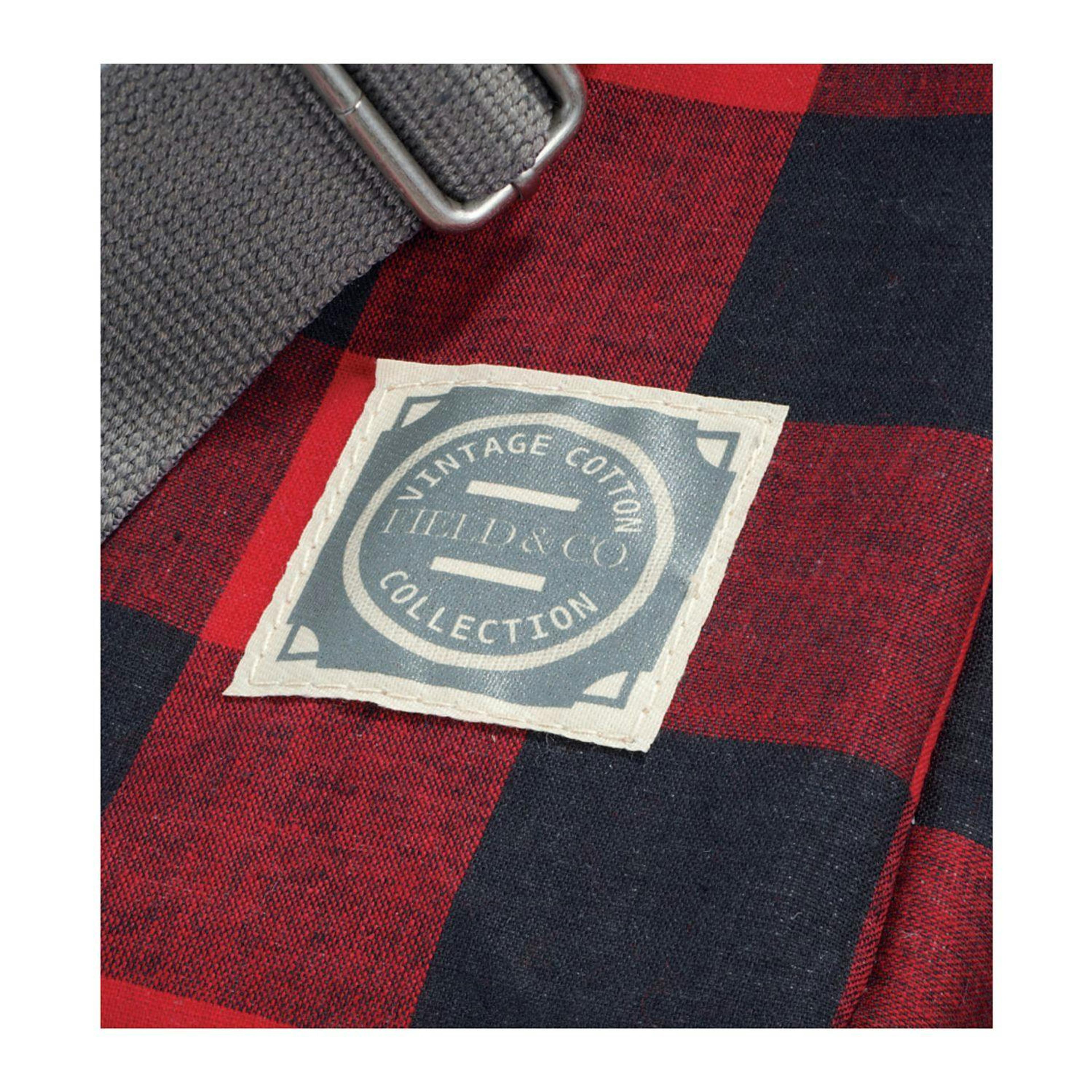 Part of the Field & Co.® Campster Series, inspiration was drawn from retro camping and old school scout looks combined with modern needs. Zippered main compartment with rustic, worn-in look, flap closure features a padded computer pocket that holds most 15" laptops. Fully lined with cotton ticking striped lining. Open front pocket is sized to fit most iPads, tablets, and eReaders in their cases. Cotton webbing carry strap is adjustable and removable with metal claw hardware, allowing for cross-body wear. Main body is constructed of 16 oz. cotton with popular buffalo check plaid. Unique Field & Co.® branding details like exterior cotton patch and interior stamp featuring the inspiration behind the collection.