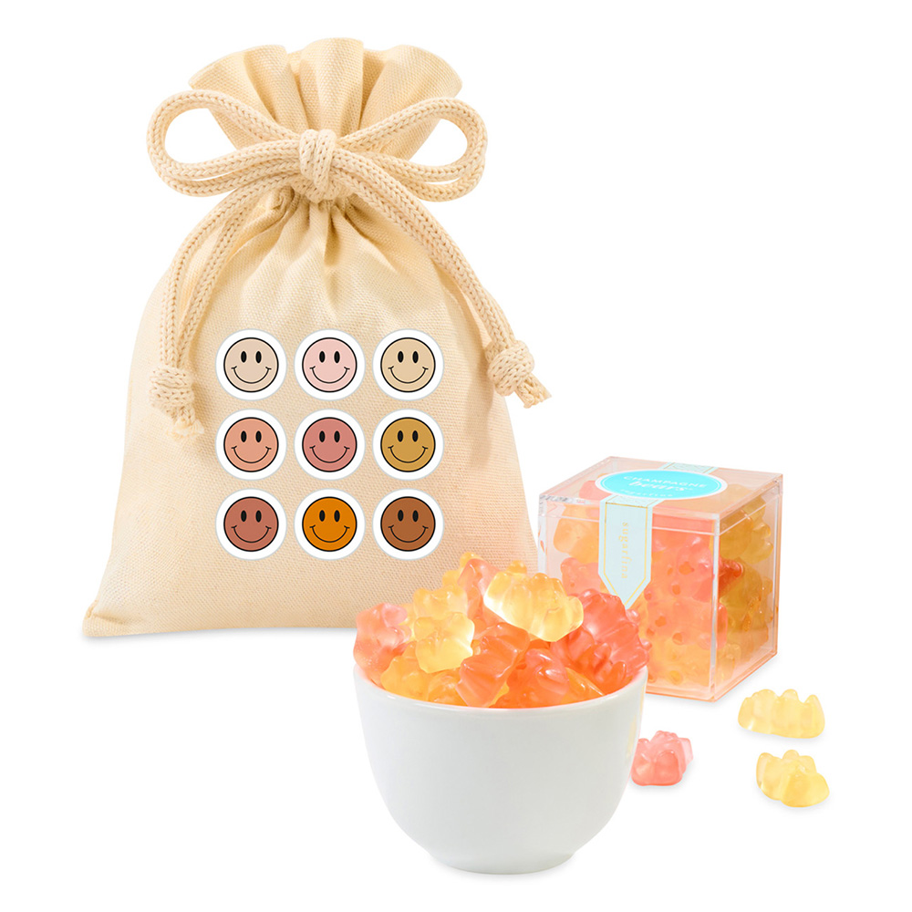 Pop the bubbly, Sugarfina’s Champagne Bears Candy Cube Gift Bag makes every celebration sweeter! These iconic gummy bears are infused with the flavors of fine champagne and packaged in Sugarfina’s signature chic Candy Cube. Tucked inside a stylish, reusable canvas bag, it’s the perfect gift for birthdays, thank-yous, or just because. Kosher, made in the USA, and crafted without artificial flavors, this is candy with a touch of luxury!