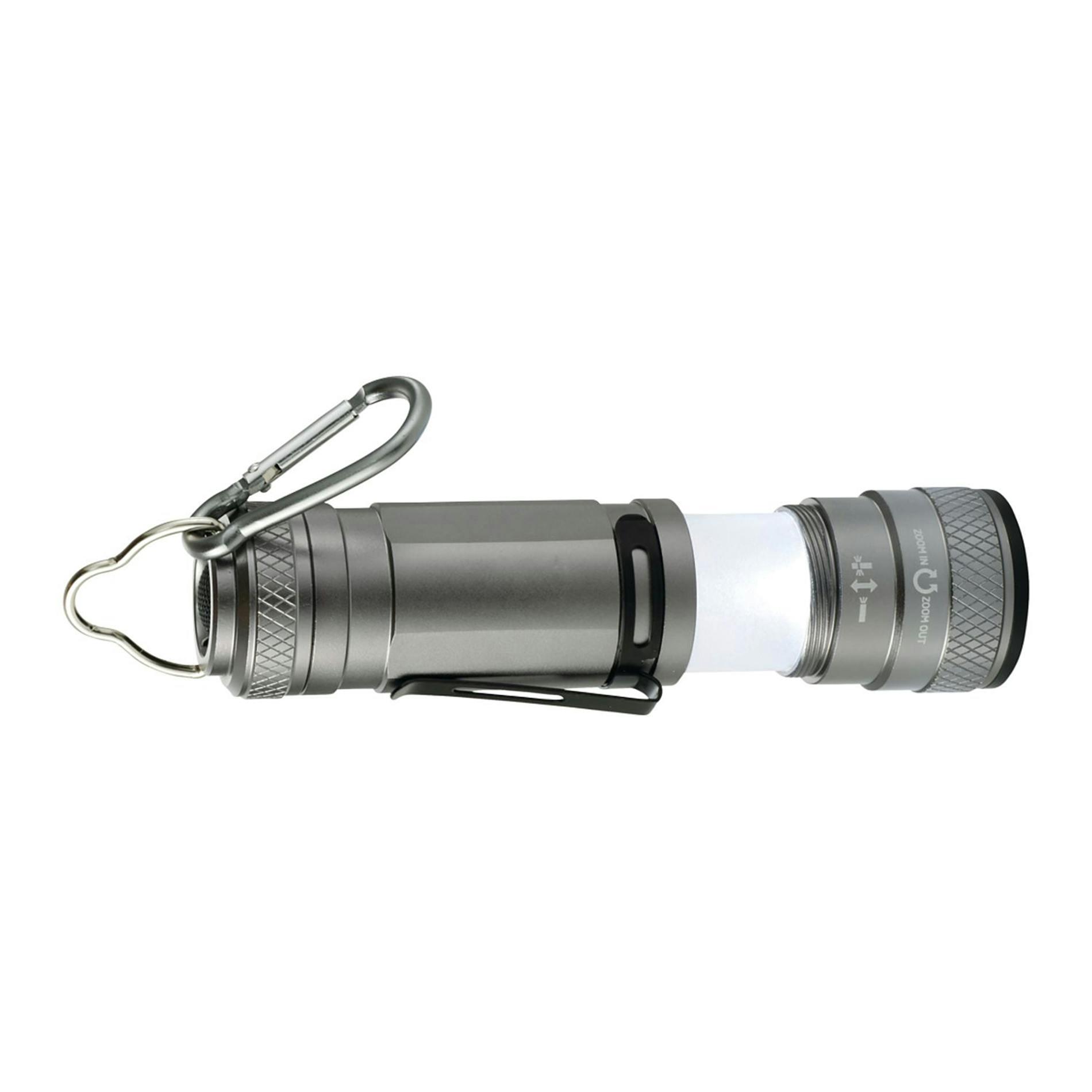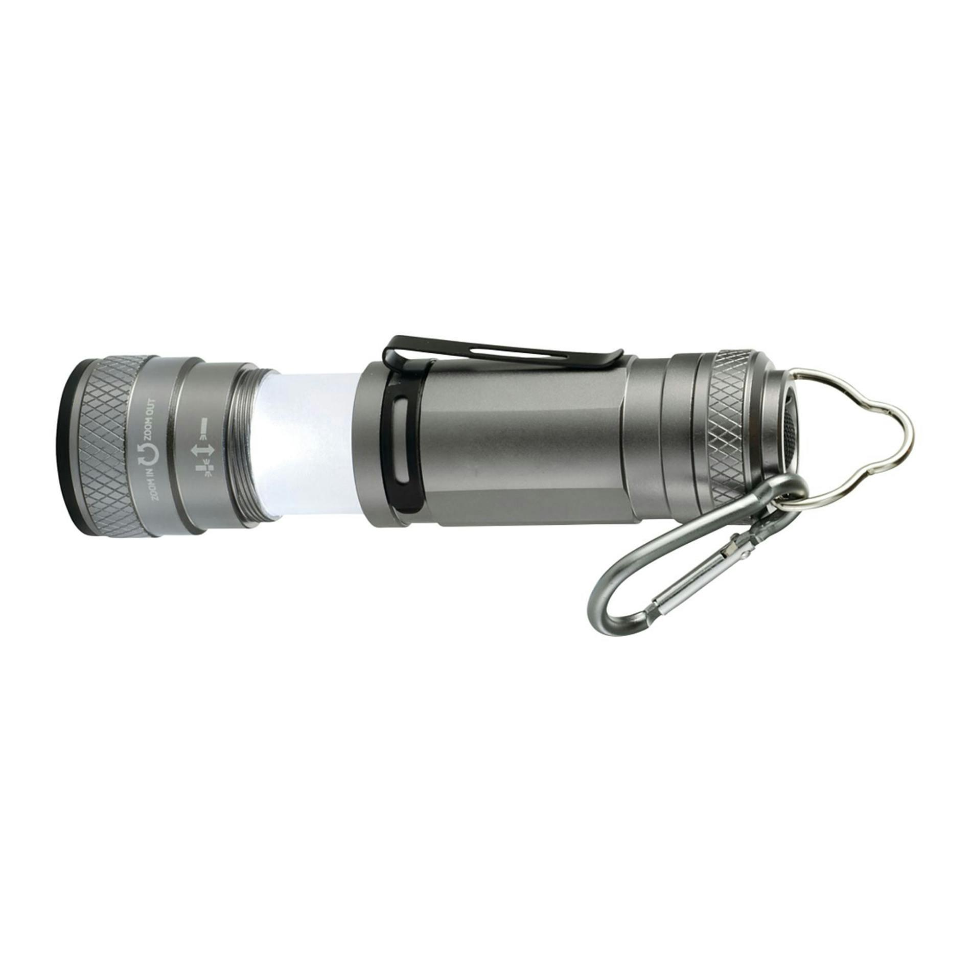 Durable and rugged, this 3 watt CREE water resistant flashlight is perfect for exploring the outdoors.Features a removable spring clip that can be positioned in the front or back for easy carrying and carabiner clip.3 outputs include: high, low and SOS flashing light. 87 lumen on high, 37 on lumen low. 3 AAA batteries included.