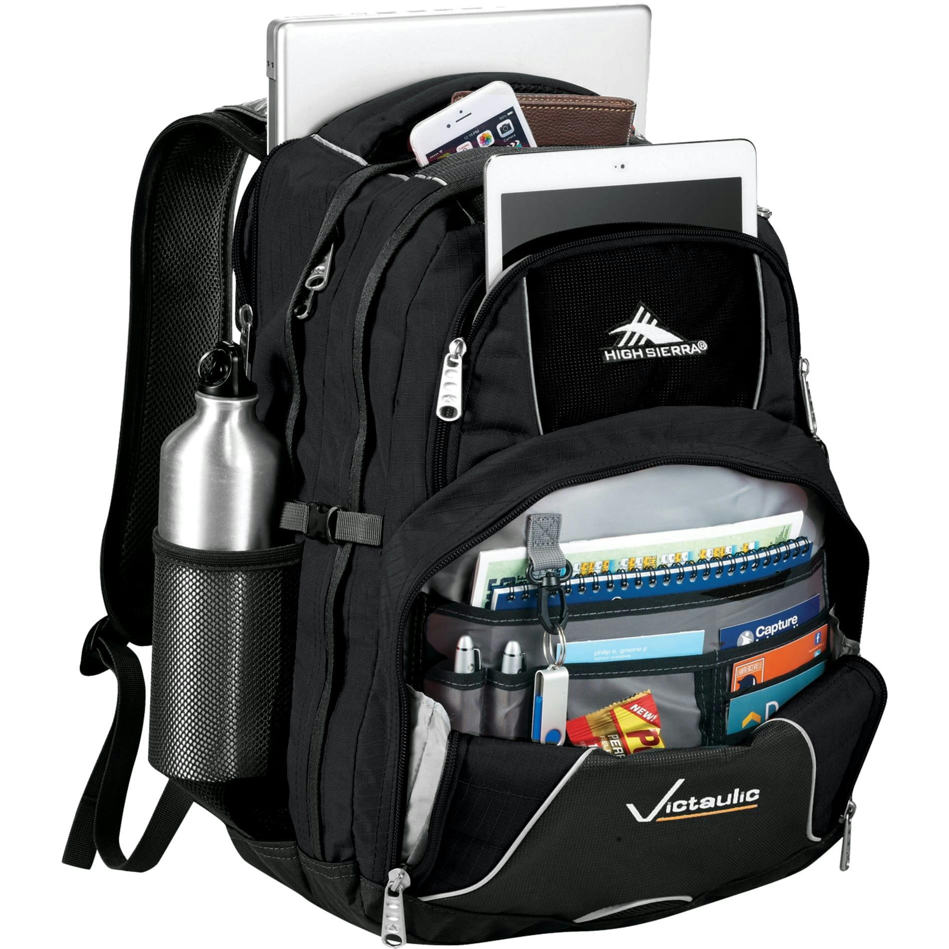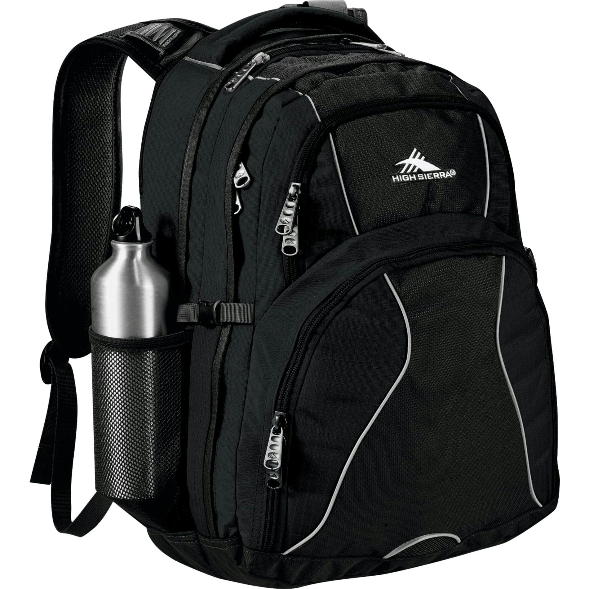 The High Sierra® Swerve 17" Computer Backpack has a padded interior computer sleeve (holds a 17" laptop) with an easy back-access zipper. It features an organizer compartment with multiple pockets, a zippered mesh pocket with a key fob, and a handy media player pocket plus a valuables pocket for a smartphone. Side mesh water bottle pockets. S-shaped Vapel™ mesh Airflow™ padded shoulder straps offer a comfortable suspension system, thumb-ring pulls, and a cell phone pocket. A Vapel mesh grab handle and padded back feature a tuck-away waist belt. Includes lifetime warranty.